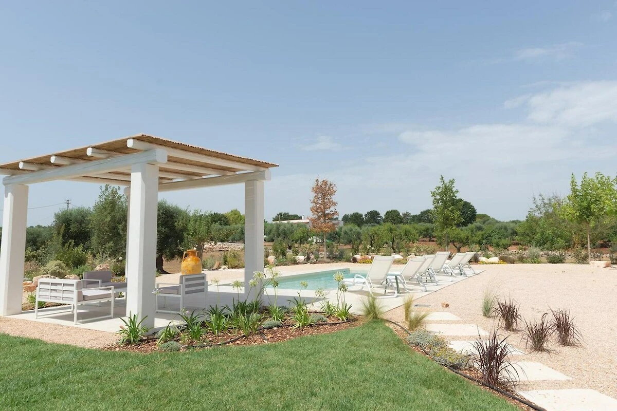 Im Garten können Sie im Pool plantschen, sich ein Sonnenbad gönnen, oder unter den schattigen Veranden eine leckere apulische Mahlzeit einnehmen. Hier ist genug Platz um beisammen zu sein und das sonnige Wetter zu genießen.
