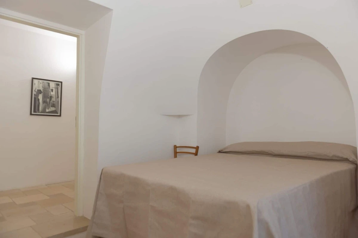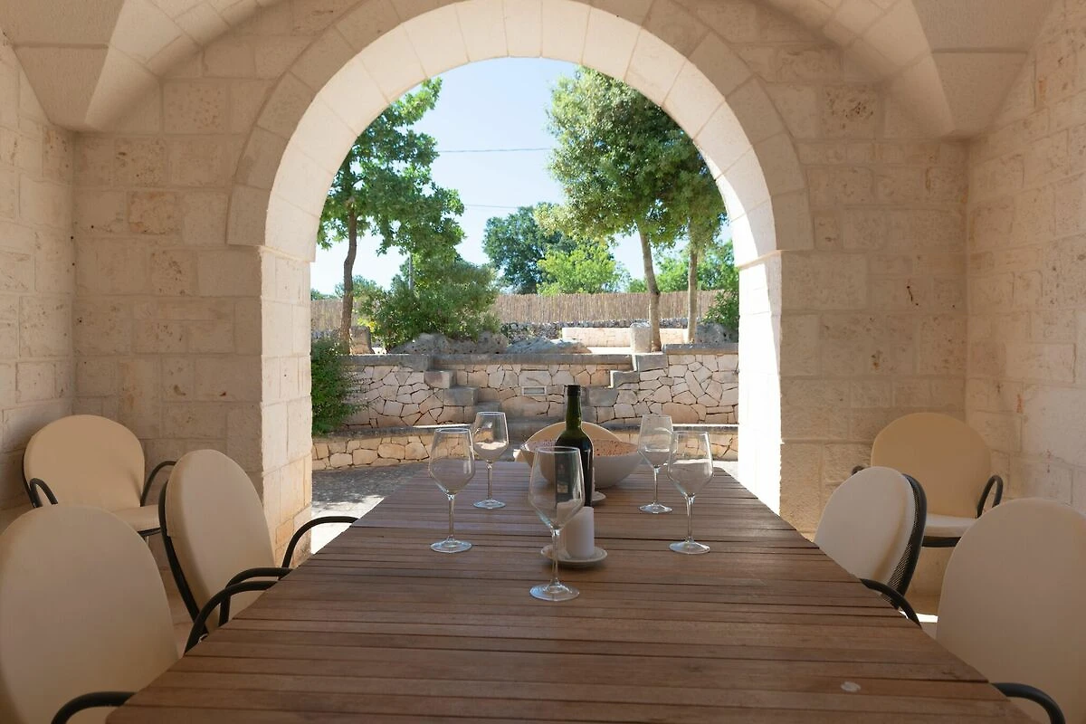 Im Grünen des Valle d'Itria bietet Trullo Tre Corbezzoli das Beste für einen erholsamen und komfortablen Urlaub in Apulien, nur wenige Kilometer von den Stränden von Marina di Ostuni entfernt. Der Trullo verfügt über eine Kapazität von 6 Betten und ist einfach eingerichtet, aber mit moderm Komfort ausgestattet. Es ist ein typisches Haus in originalen Trulli mit 2 Schlafzimmern und 2 Bädern, Wohnzimmer und sehr gut ausgestatteter Küche, Panorama-Swimmingpool zur alleinigen Nutzung, Pinienwald.