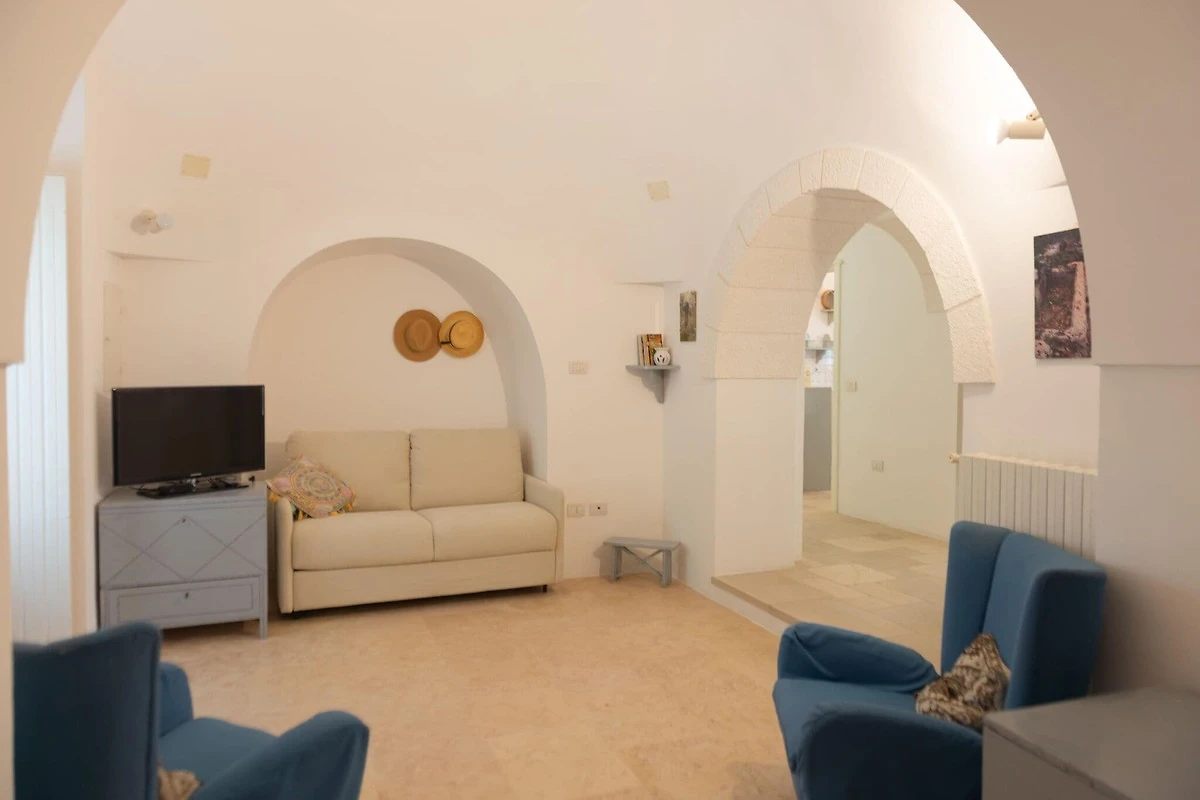 Die Ruhe dieses Ortes hat uns gefallen, Der Trullo ist einfach, aber gemütlich, und zwei Badezimmer waren ein Plus für unsere Gruppe, Die Lage ist gut, in der Nähe des Strandes, aber nicht zu überfüllt, Der Eigentümer war freundlich und half uns mit Tipps, wo wir hingehen sollten, Der einzige Nachteil war, dass das WiFi etwas langsam war, aber ehrlich gesagt, wer braucht das, wenn man diese Aussicht hat?