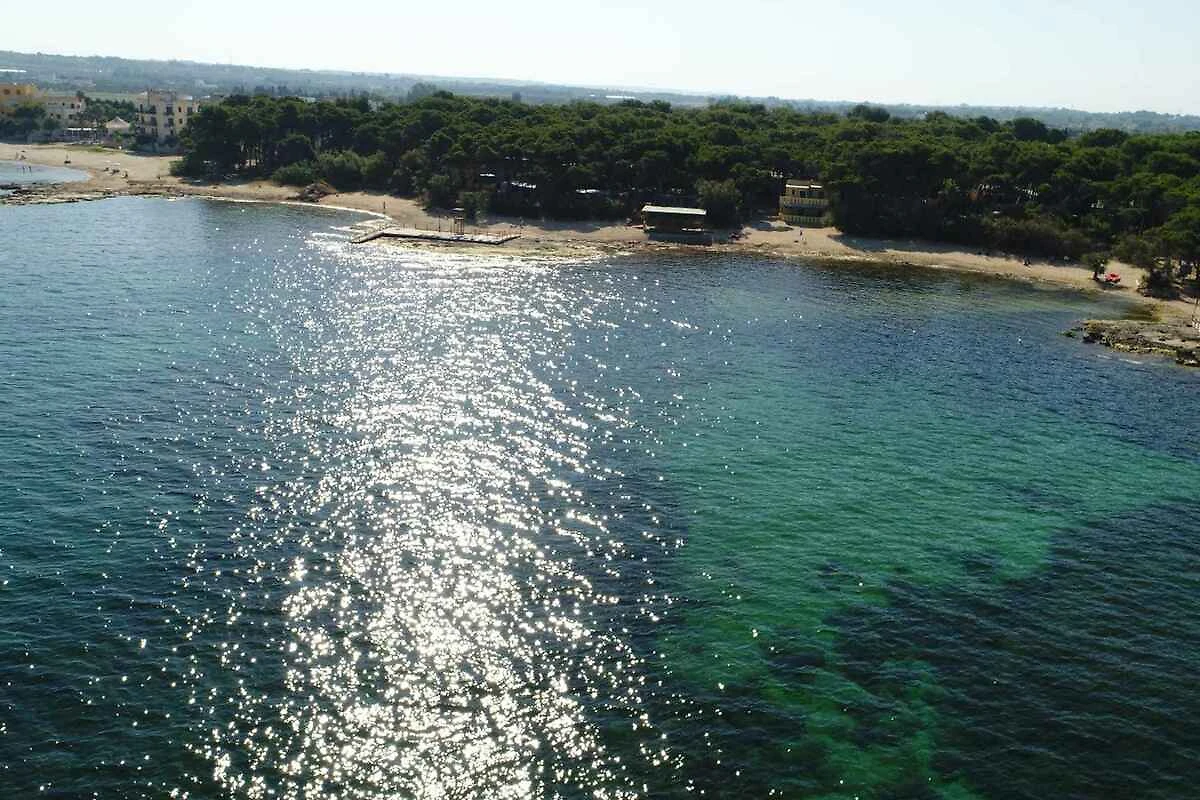 Einkauf 700 m, Restaurant 350 m, Ortszentrum 3,5 km. Flughafen in Brindisi 71,3 km. Gallipoli: Bank 2,8 km, Arzt 3,5 km und Bahnhof 3,7 km. Apotheke in Rivabella 2,1 km. Thermalbad in Sannicola 6,2 km. Im Sommer: Ionisches Meer 150 m in Rivabella (Strand 150 m in Rivabella mit Sand). Minigolf in Gallipoli 4 km. Tennis in Tuglie 10,3 km. Der Strand, mit seinem sanft abfallenden Meeresboden, ist direkt vom Pinienwald aus zugänglich und bietet sowohl einen freien Bereich als auch eine ausgestattete Zone mit Sonnenschirmen und Liegestühlen, die im hauseigenen Basar gebucht werden können. Der ausgestattete Strandservice ist für 12 Euro pro Tag für einen Sonnenschirm und zwei Liegestühle verfügbar.