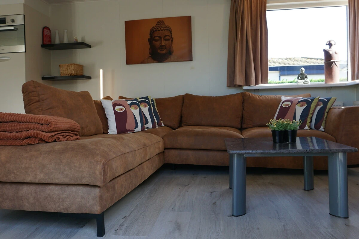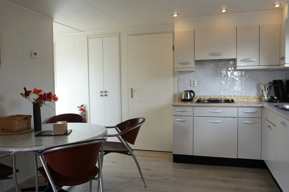 Im Inneren finden Sie eine voll ausgestattete Küche mit Geschirrspüler, Backofen, Wasserkocher und Kaffeemaschine. Alles notwendige Geschirr ist vorhanden, so dass Sie alle Ihre Mahlzeiten leicht zubereiten können. Das gemütliche Wohnzimmer ist mit einem bequemen Sofa, einem Fernseher und einem Esstisch ausgestattet, ideal für gemütliche Abende mit der Familie oder Freunden.
