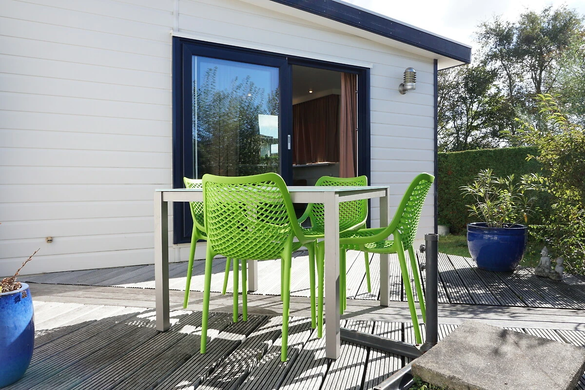 Der Bungalow verfügt über eine nach Süden ausgerichtete Terrasse, auf der Sie die Ruhe und die frische Luft genießen können. Es gibt auch einen Parkplatz in der Nähe des Bungalows.