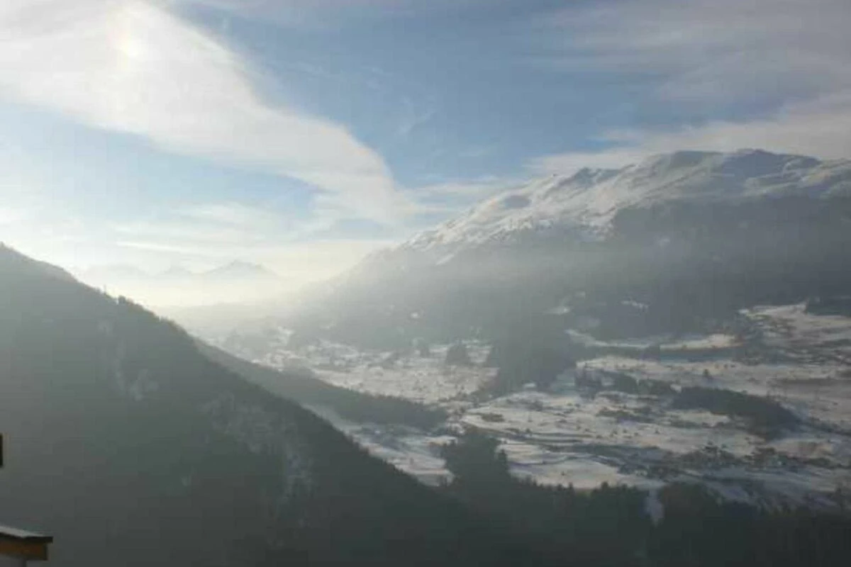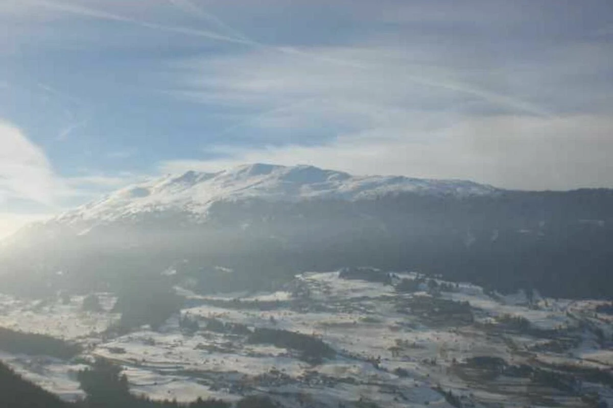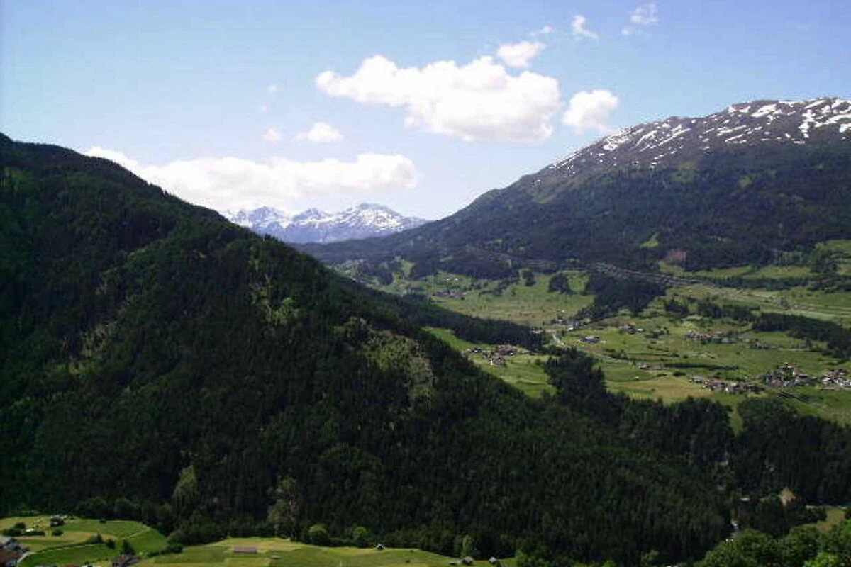 Ein Bergpanorama mit herrlicher Aussicht bis zur anderen Talseite, im Sommer und im Winter.