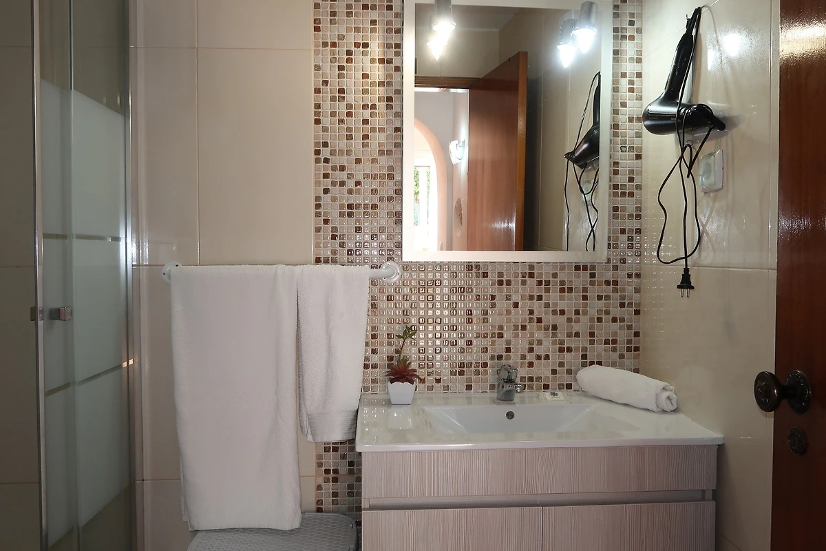Nächste Sandstrände in Fuzeta (14km) und auf der Insel 'Ilha de Faro' (21 km). Das kleine Städtchen Estoi (ca. 3.000 Einwohner) ist 6 km entfernt und ist eine typische Algarve-Gemeinde des ländlichen Barrocal im Distrikt Faro im Hinterland der Mittelmeerküste. Das symphatische Städtchen bietet u.a. ein Barockschlösschen aus dem 19. Jhdt. (heute ein Hotel), Überreste einer römischen Siedlung und das berühmte Reiterfest 'Festa da Pinha' (Anfang Mai jeden Jahres). Gute touristische Infrastruktur vorhanden wie Restaurants, Geschäfte, Bars, Cafés, etc. Der kleine Ort Peral (Restaurants, Erlebnisbauernhof) in 1 km Entfernung. Sao Brás de Alportel mit Supermärkten, Frei- und Hallenbad, Tennisplätzen und Busterminal ist 5,5 km entfernt. Zur hübschen Stadt Faro sind es 12 km.