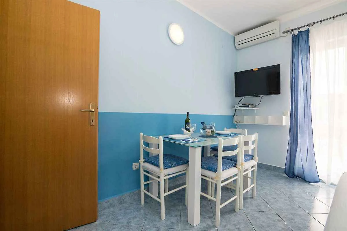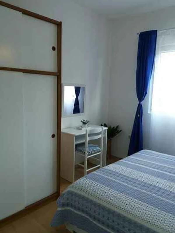 Marina. Die Ferienwohnung befindet sich auf einem geschlossenen Gartengrundstück mit Bäumen, von einem Zaun begrenzt. Der Vermieter wohnt ständig im Haus, nutzt jedoch einen separaten Eingang. Die Zufahrt erfolgt über eine Nebenstrasse (asphaltiert). Parkplatz auf dem Grundstück.