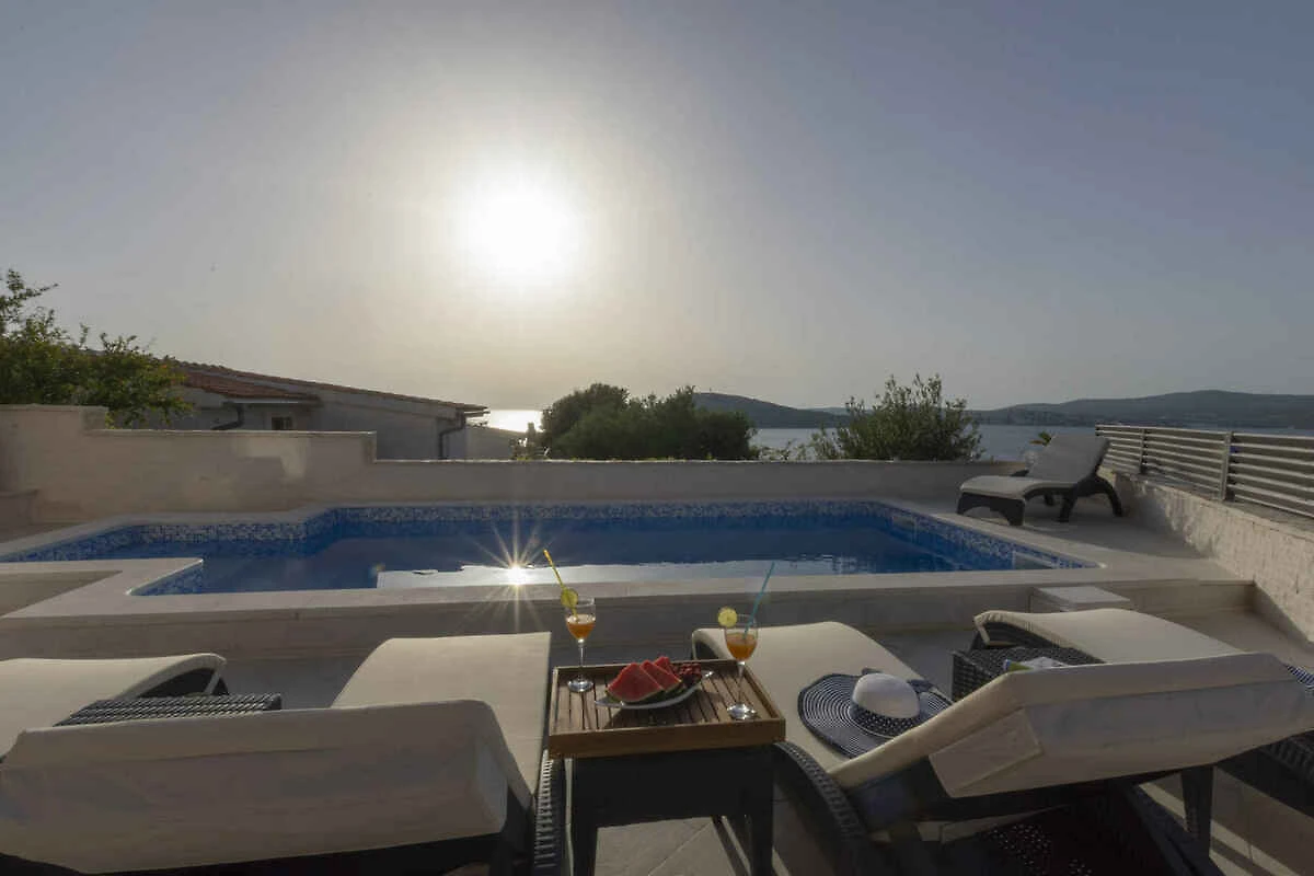 Ražanj. Die Villa befindet sich auf einem 250 qm grossen, geschlossenen Gartengrundstück, von einem Zaun begrenzt. Strand ist Kiesstrand mit betonierten Liegeflächen. Die Zufahrt erfolgt über eine Nebenstrasse. Parkplatz auf dem Grundstück.