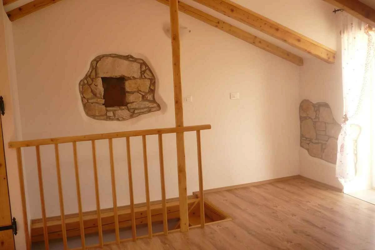 Cres. Das Ferienhaus befindet sich auf einem 600 qm grossen, geschlossenen Gartengrundstück, von einem Zaun begrenzt. Die Zufahrt erfolgt über eine Nebenstrasse (Geröll oder Schotter).