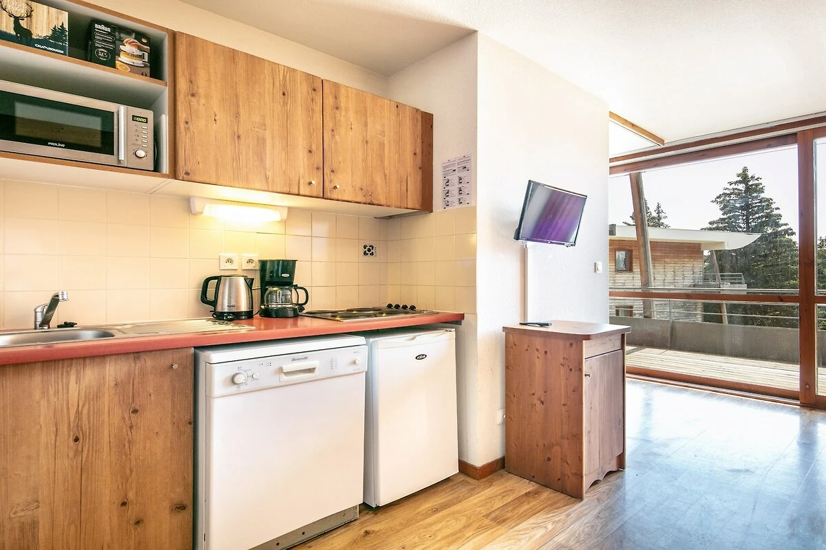 Das Apartment verfügt über eine 11 m² große Terrasse mit Gartenmöbeln – ideal zum Entspannen nach einem Tag auf der Piste und Genießen der frischen Alpenluft. Im Inneren finden Gäste durchdachte Annehmlichkeiten wie einen Fernseher und einen Haartrockner. Für zusätzlichen Komfort stehen Parkplätze im Freien vor Ort zur Verfügung.