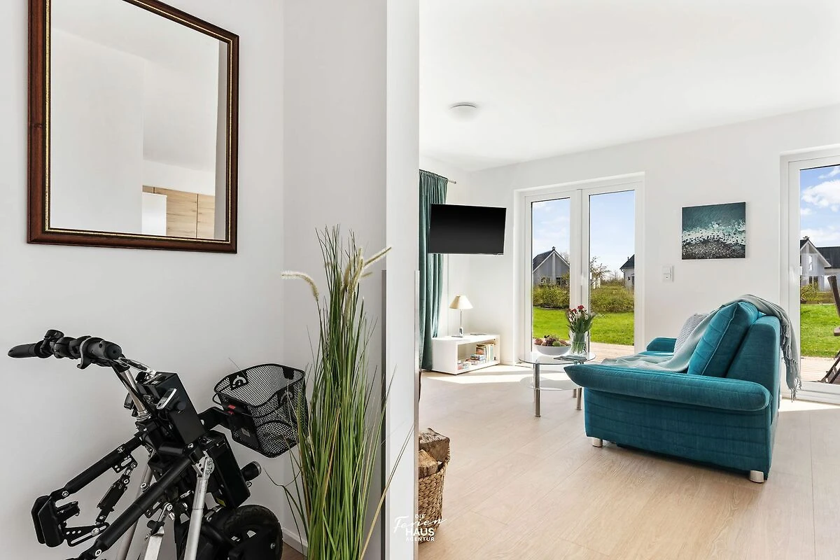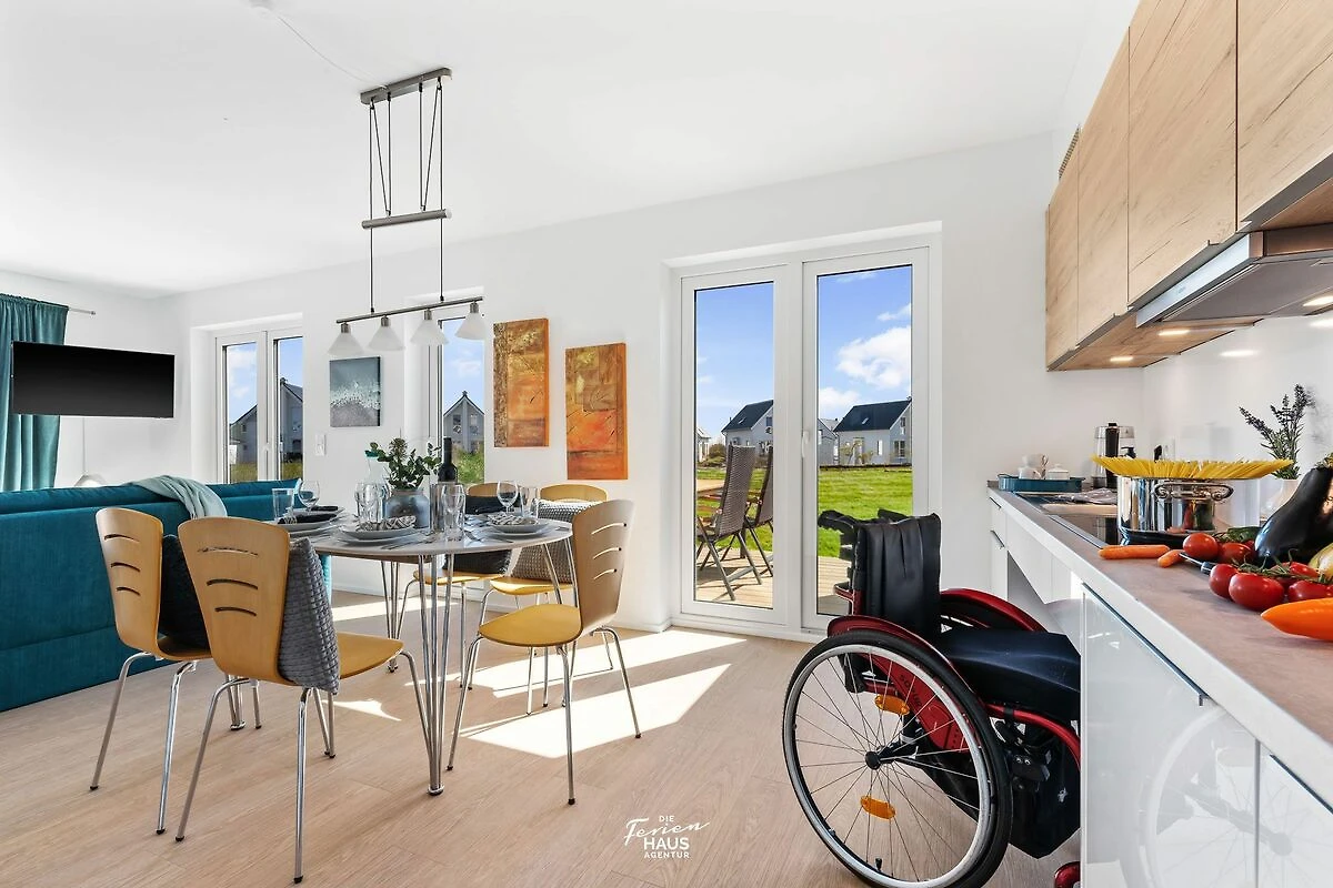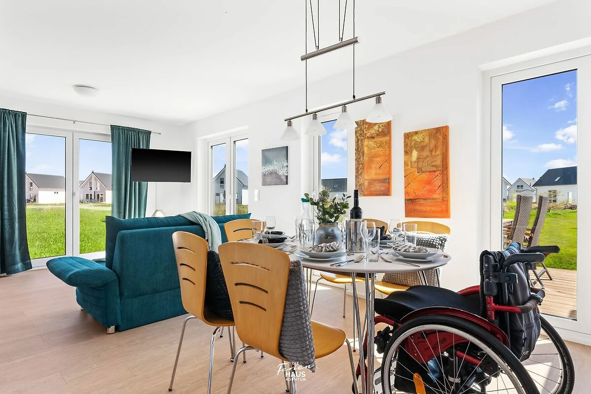 Willkommen in der Rolli-Oase! Der ersten komplett rollstuhlgerechten Ferienwohnung im Ostseeresort. Über eine bequem ansteigende Rampe gelangt ihr nahezu schwellenlos zur Haustür.
