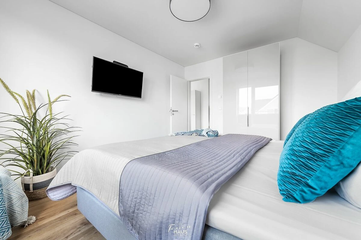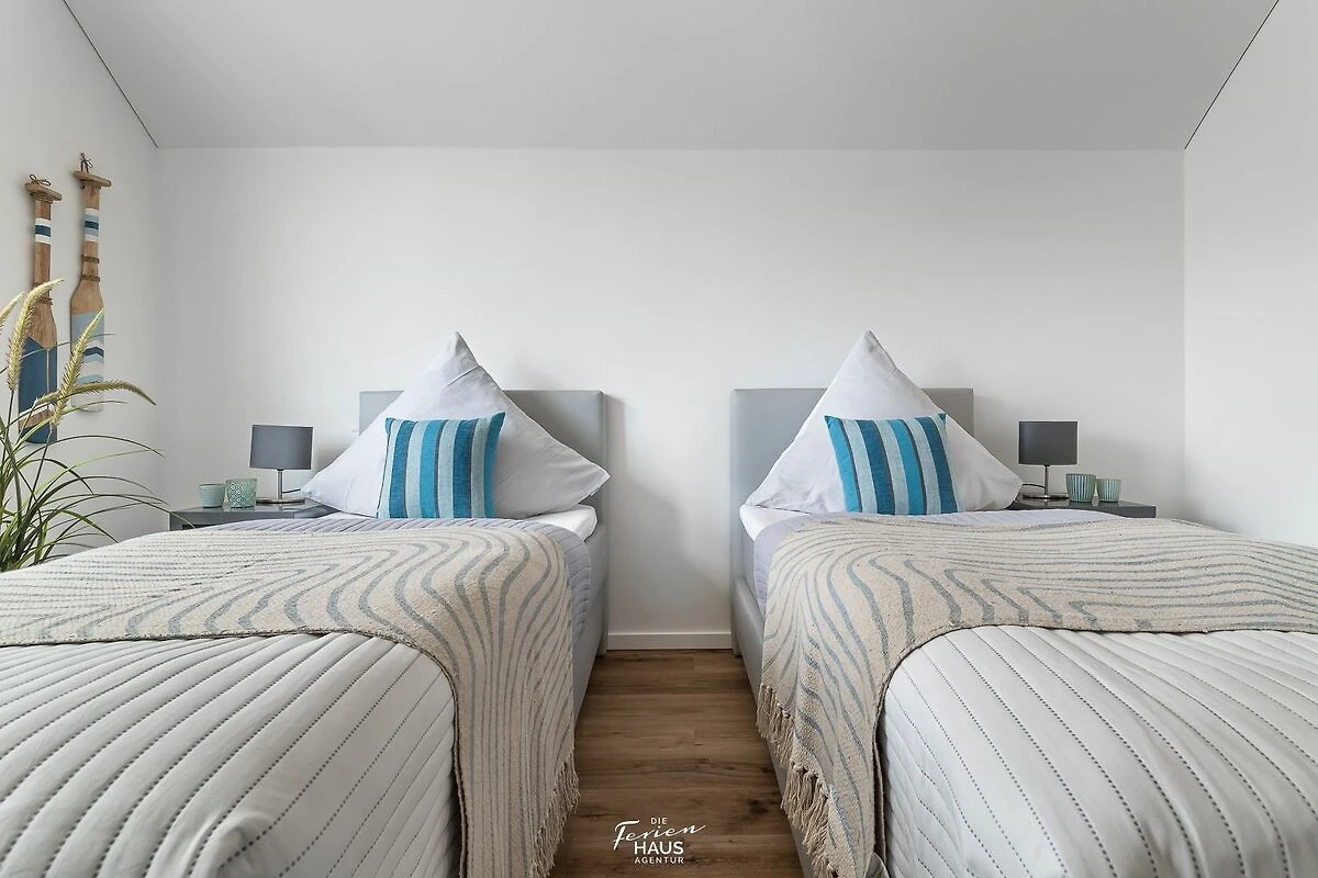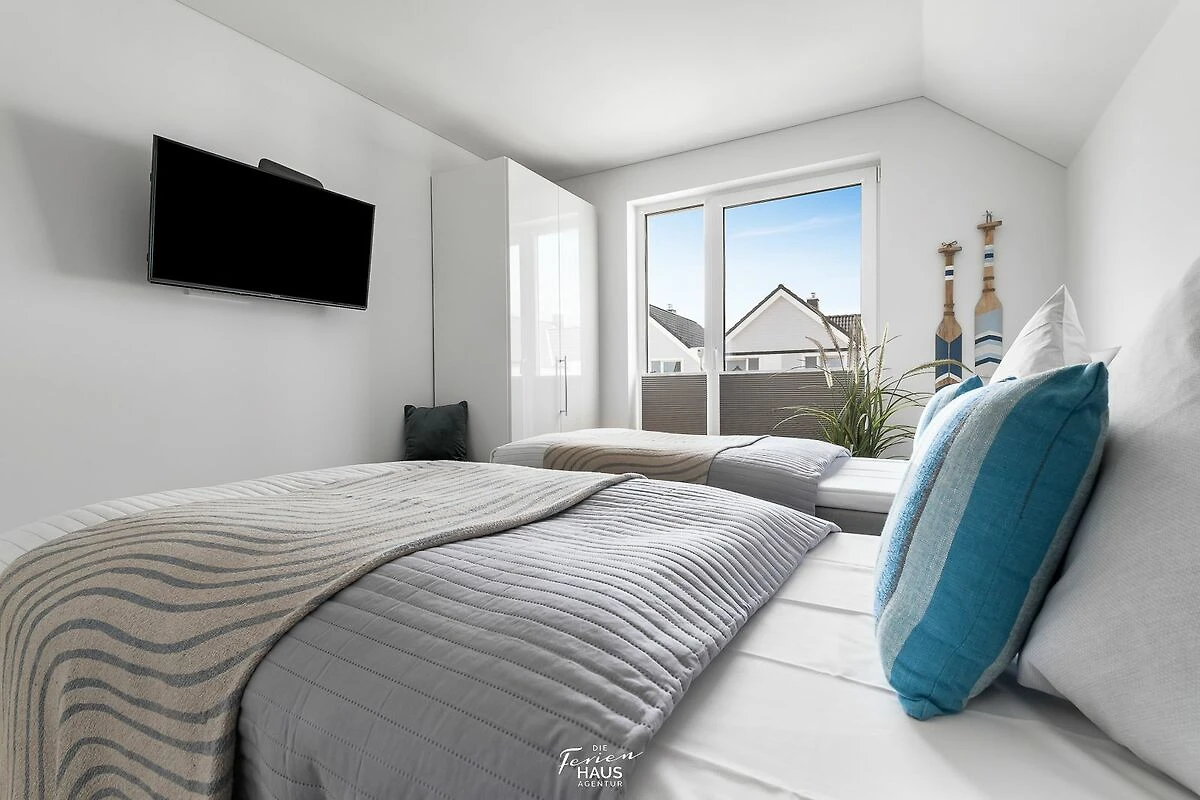 Für erholsamen Schlaf stehen zwei Schlafzimmer zur Verfügung. Das erste Schlafzimmer mit einem bequemes Doppelbett und das Zweite mit zwei Einzelbetten. Egal für welches ihr euch entscheidet, Ostsee-Träume sind euch sicher. Beide Schlafzimmer verfügen über einen TV.
