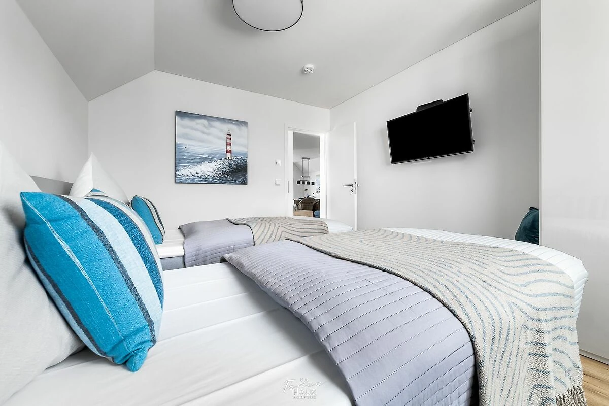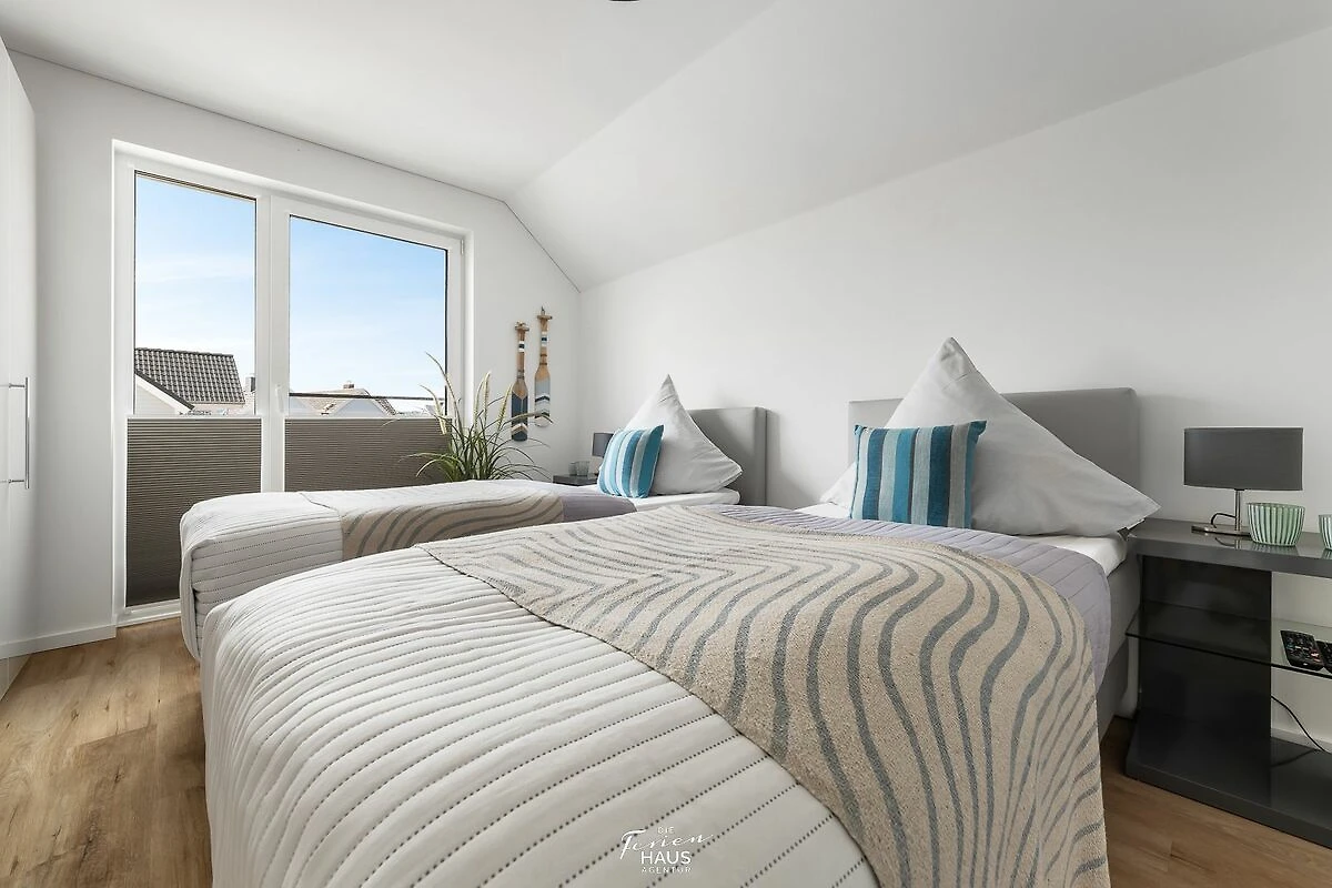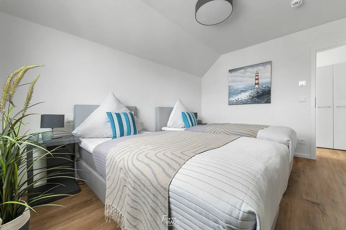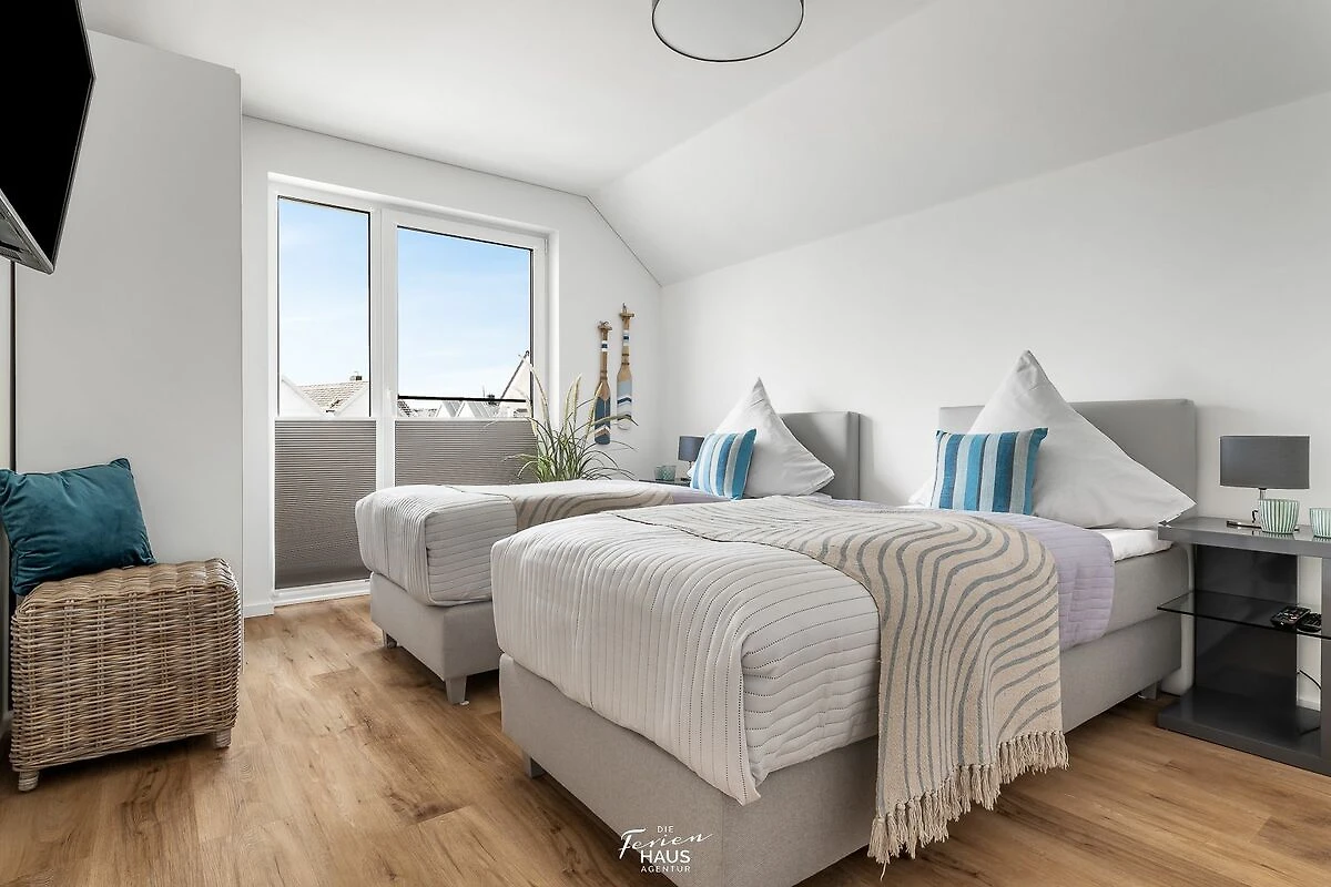 Für erholsamen Schlaf stehen zwei Schlafzimmer zur Verfügung. Das erste Schlafzimmer mit einem bequemes Doppelbett und das Zweite mit zwei Einzelbetten. Egal für welches ihr euch entscheidet, Ostsee-Träume sind euch sicher. Beide Schlafzimmer verfügen über einen TV.