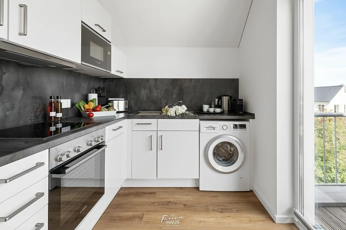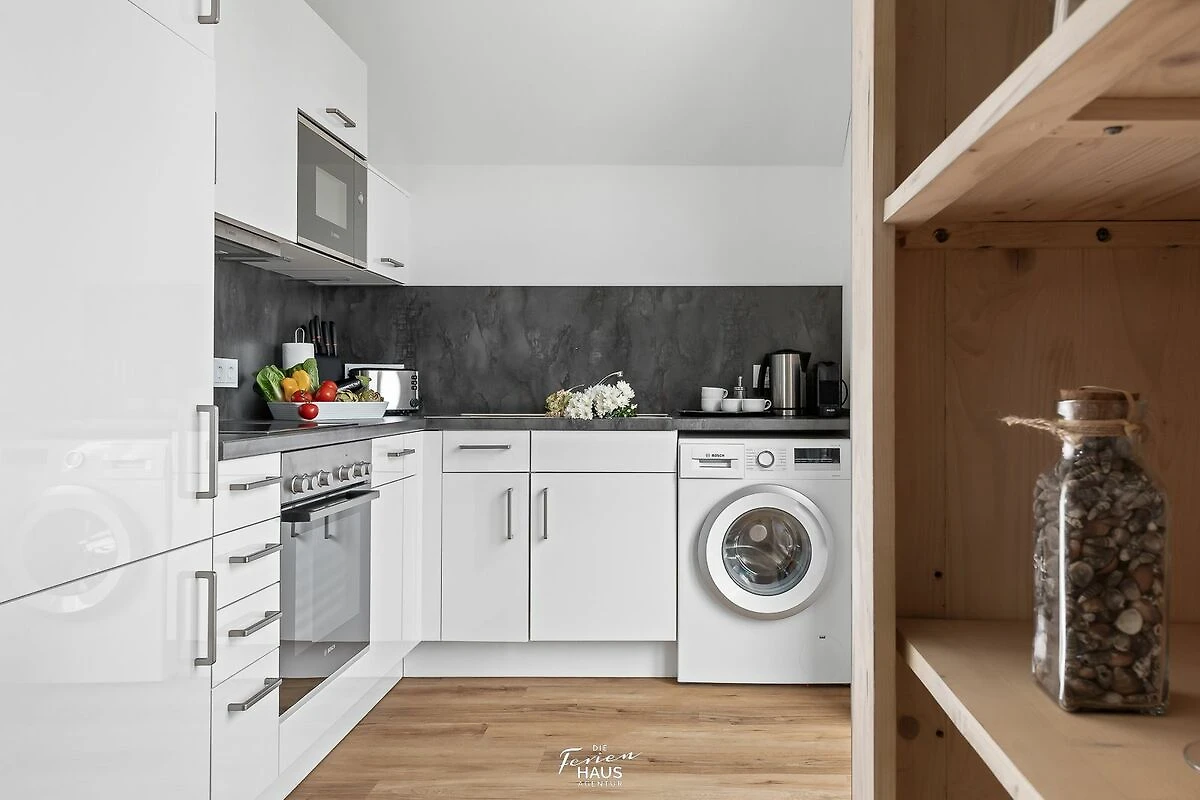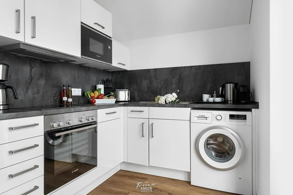 Die offene Küche ist hochwertig ausgestattet und lässt jedes Hobbykoch-Herz höher schlagen. Hier bleiben keine kulinarischen Wünsche unerfüllt.