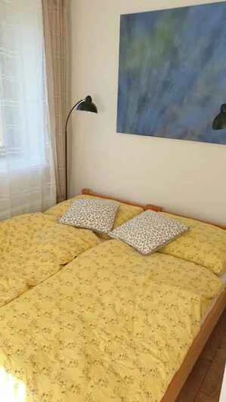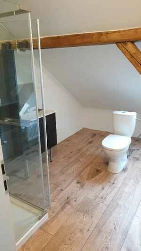 2. Etage: Schlafzimmer (Durchgangszimmer) mit 1 Doppelbett und 1 Einzelbett. Bad mit Dusche, 1 Waschbecken und WC.