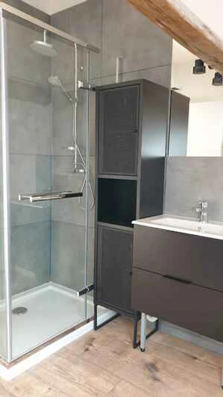 1. Etage: Schlafzimmer (Durchgangszimmer) mit 2 Doppelbetten, 2 Einzelbetten und 1 Zusatzbett auf Schlafgelegenheit. Schlafzimmer (Durchgangszimmer) mit 1 Doppelbett und 2 Einzelbetten. Schlafzimmer (Durchgangszimmer) mit 2 Doppelbetten und 2 Einzelbetten. Schlafzimmer mit 1 Doppelbett und 1 Einzelbett. 4 Bäder jeweils mit Dusche, 1 Waschbecken und WC. Separates WC mit WC.