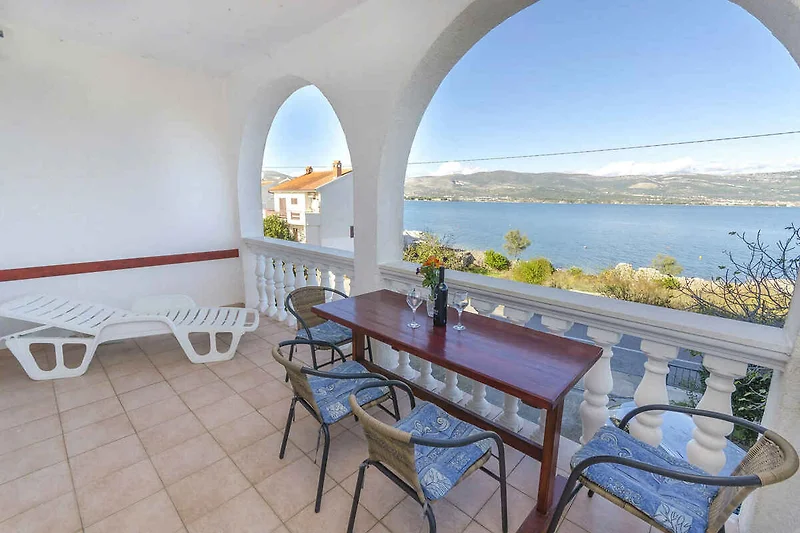 Slatine. Der Vermieter wohnt nur zeitweise im Haus, nutzt jedoch einen separaten Eingang. Aussicht: Meer und Grünfläche. Parkplatz auf der Strasse vor dem Haus.