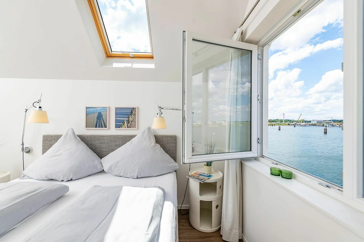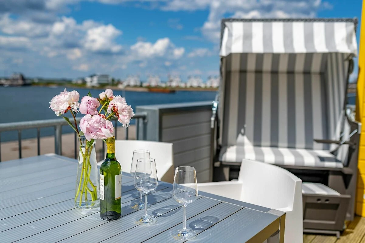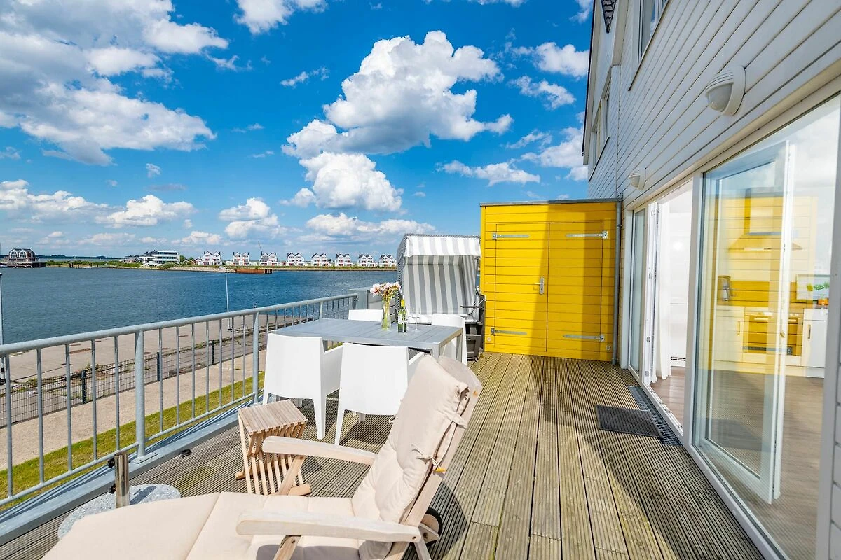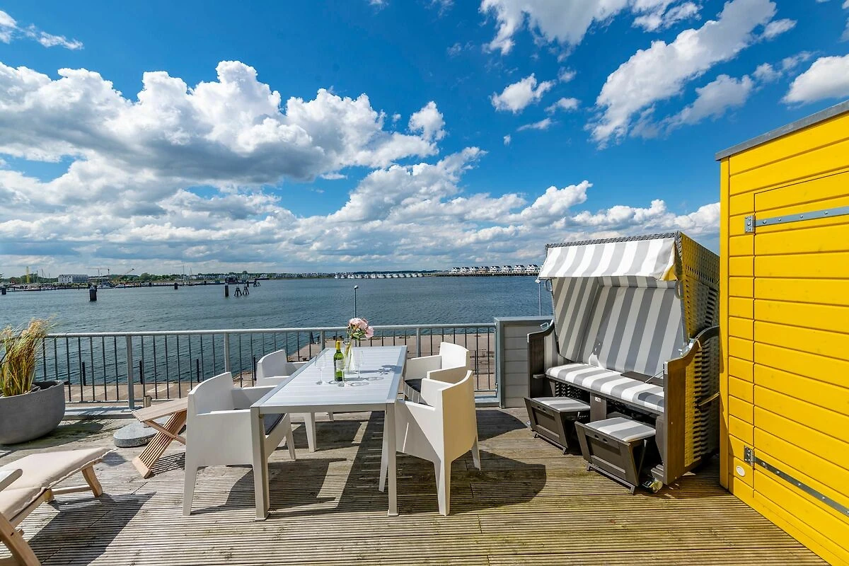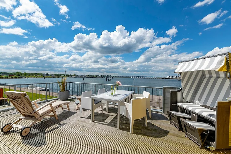 Unser Lieblingsplatz: Die beiden Außenbereiche! Betreibt Terrassen-Hopping und kostet je nach Sonnenstand, die Ostseebrise und das Hafenkino voll aus.