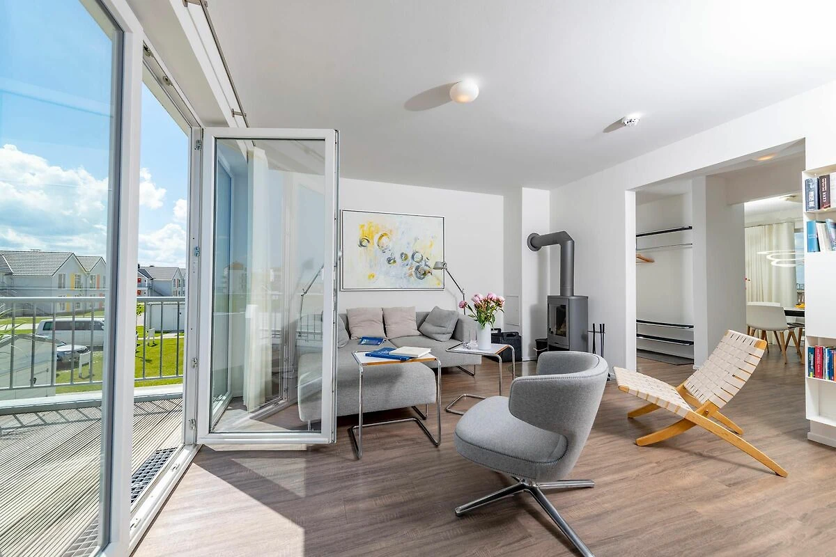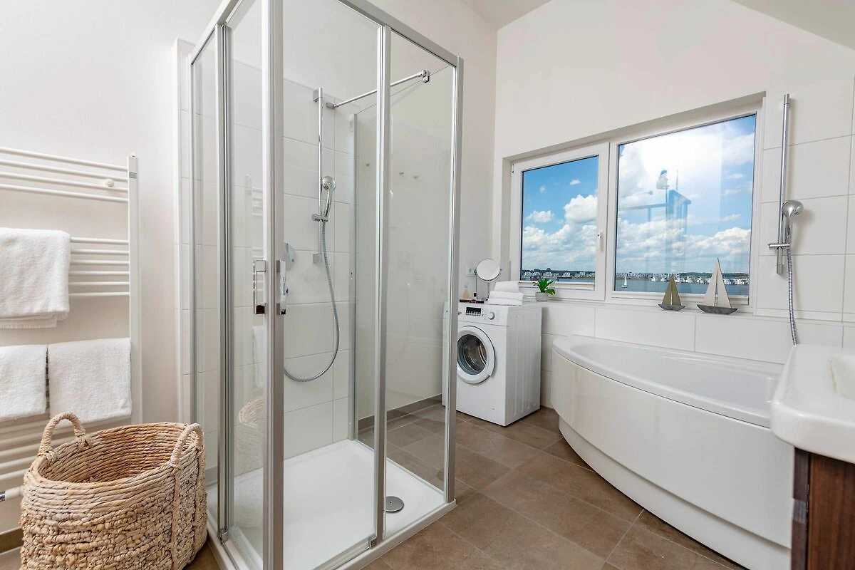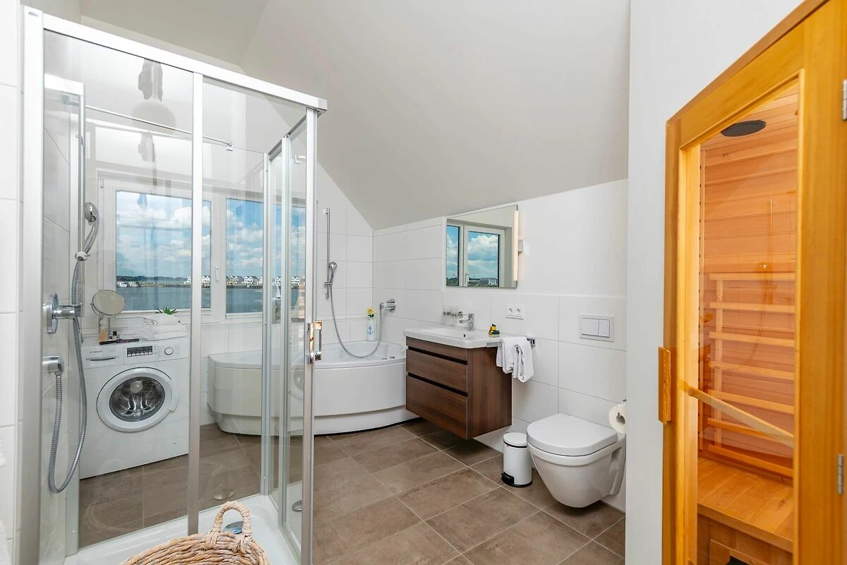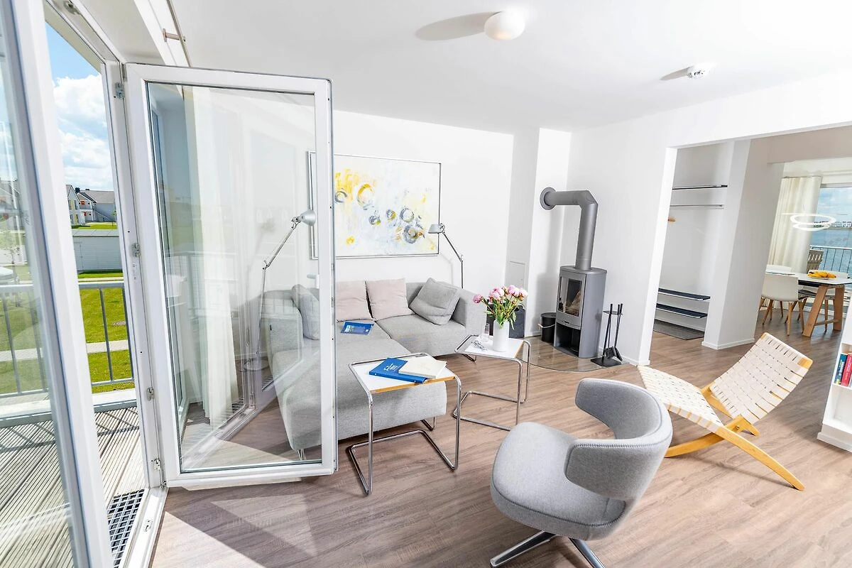 Traumhafte Aussichten eröffnen sich auf der an den Wohnbereich angrenzenden Terrasse mit Blick über den Segel- und Sportboothafen des OstseeResort Olpenitz. Hafenkino sorgt hier für Unterhaltung während eines geselligen Grillabends oder romantischen Candle-Light-Dinners bei Sonnenuntergang. Die Wohnküche ist erstklassig ausgestattet und erlaubt vollen Urlaubskomfort. Frühstück lässt sich gemeinsam an dem großen Esstisch und bei wunderschöner Morgensonne auf der 24m2 großen Terrasse genießen.