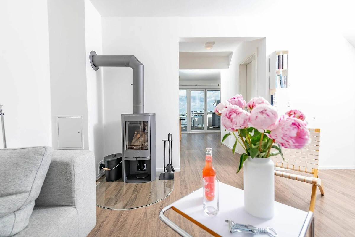 Mit zwei Wohnebenen und hohen Decken überzeugt diese Maisonette-Wohnung, denn sie ist offen und großzügig gestaltet - das Wohngefühl gleicht wahrlich einem „kleinen Haus“. Nordisches Design und moderne Klassiker zieren hierbei das Interieur.