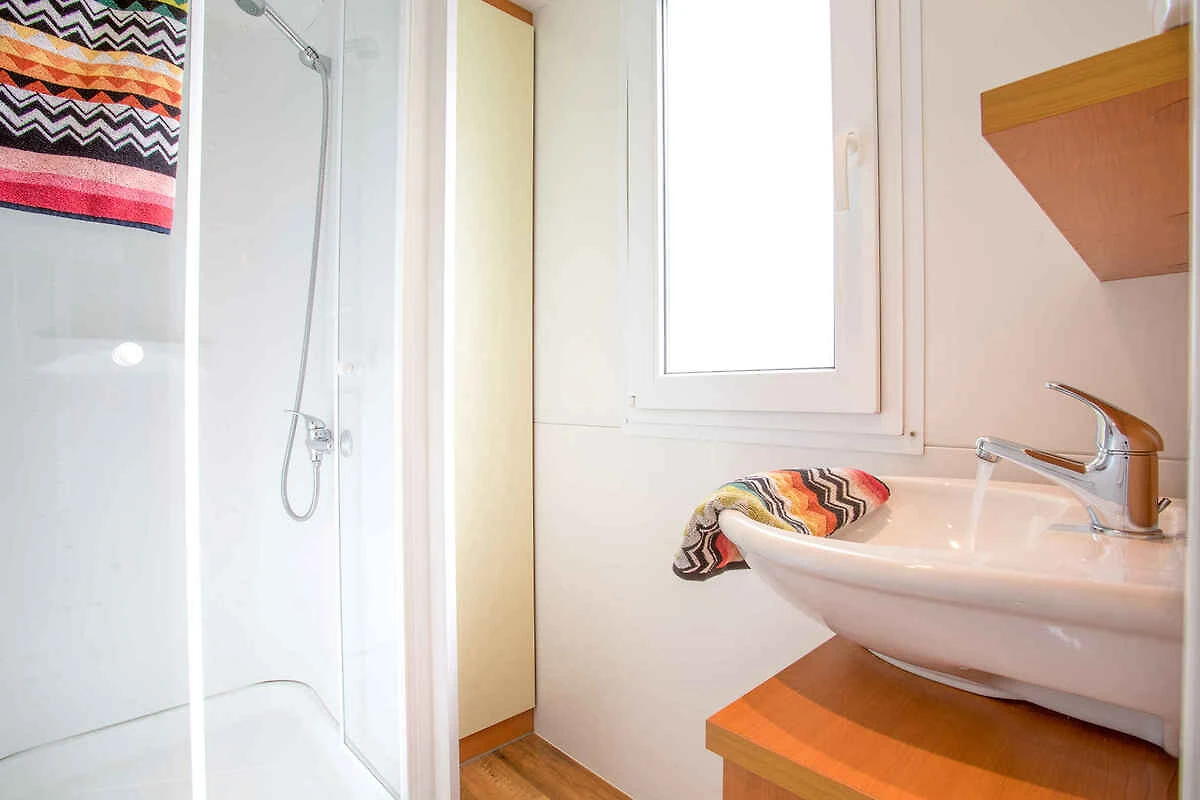 Mobilehome, 1 Etage, 3 Zimmer (davon 2 Schlafzimmer), 24 qm, insgesamt 6 Betten (davon 2 Zusatzbetten).