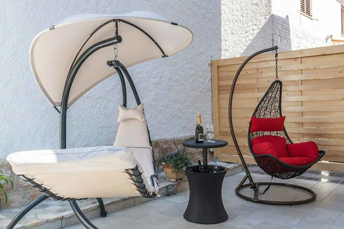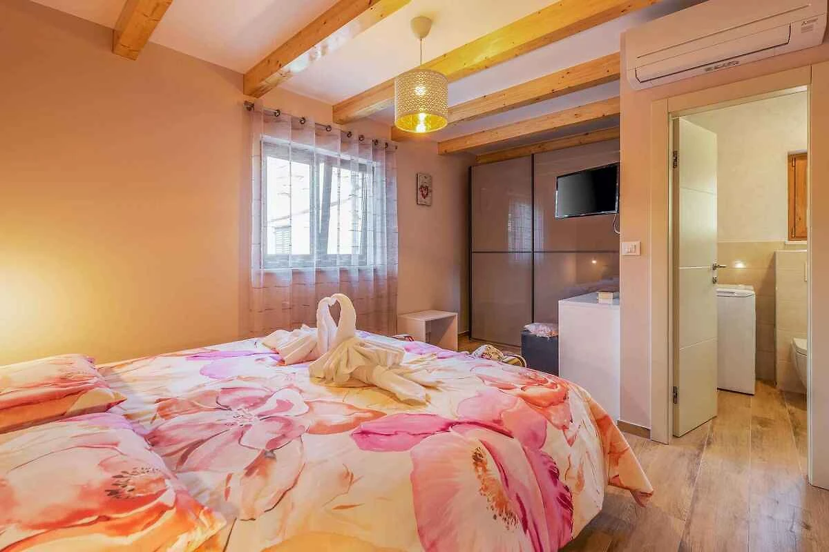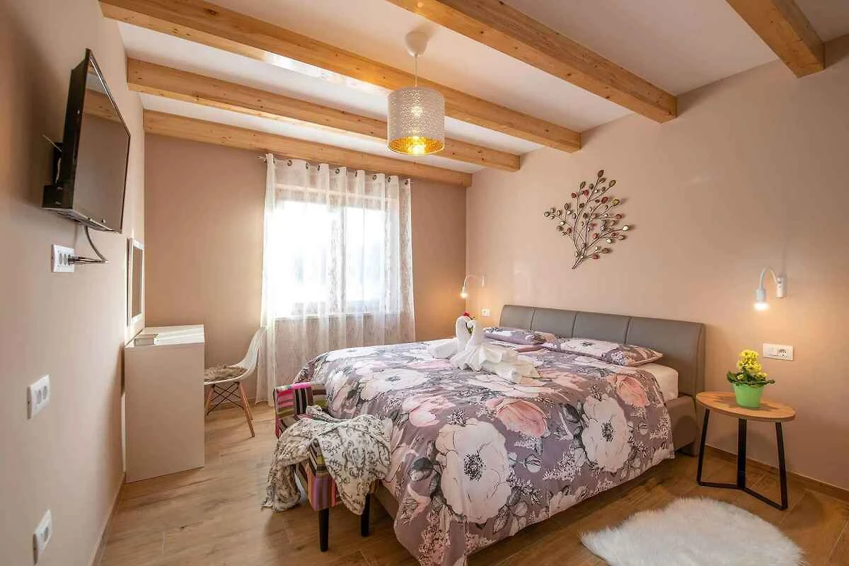 Krnica. Das Ferienhaus befindet sich auf einem 200 qm grossen Grundstück. Der Vermieter wohnt in einem separaten Gebäude auf dem Grundstück. Parkplatz auf der Strasse vor dem Haus.