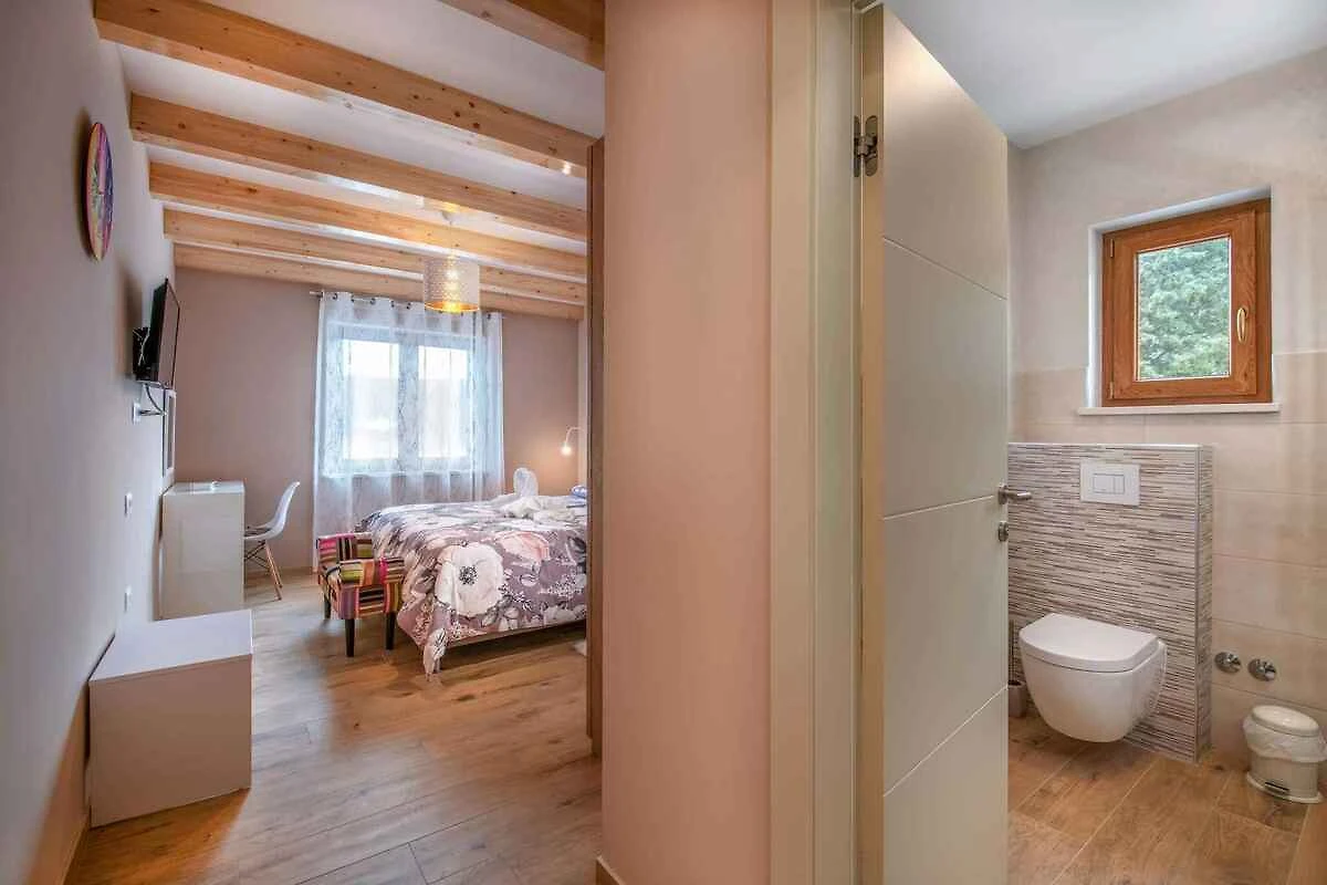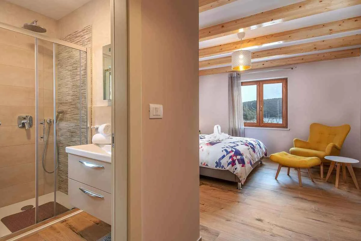 Einkauf 2,5 km, Restaurant 10 m. Apotheke in Marcana 11 km. Pula: Flughafen 20 km und Diskothek, Arzt jeweils 25 km. Im Sommer: Adria 20 m in Krnica (Strand 100 m in Krnica mit Kies und Felsen).