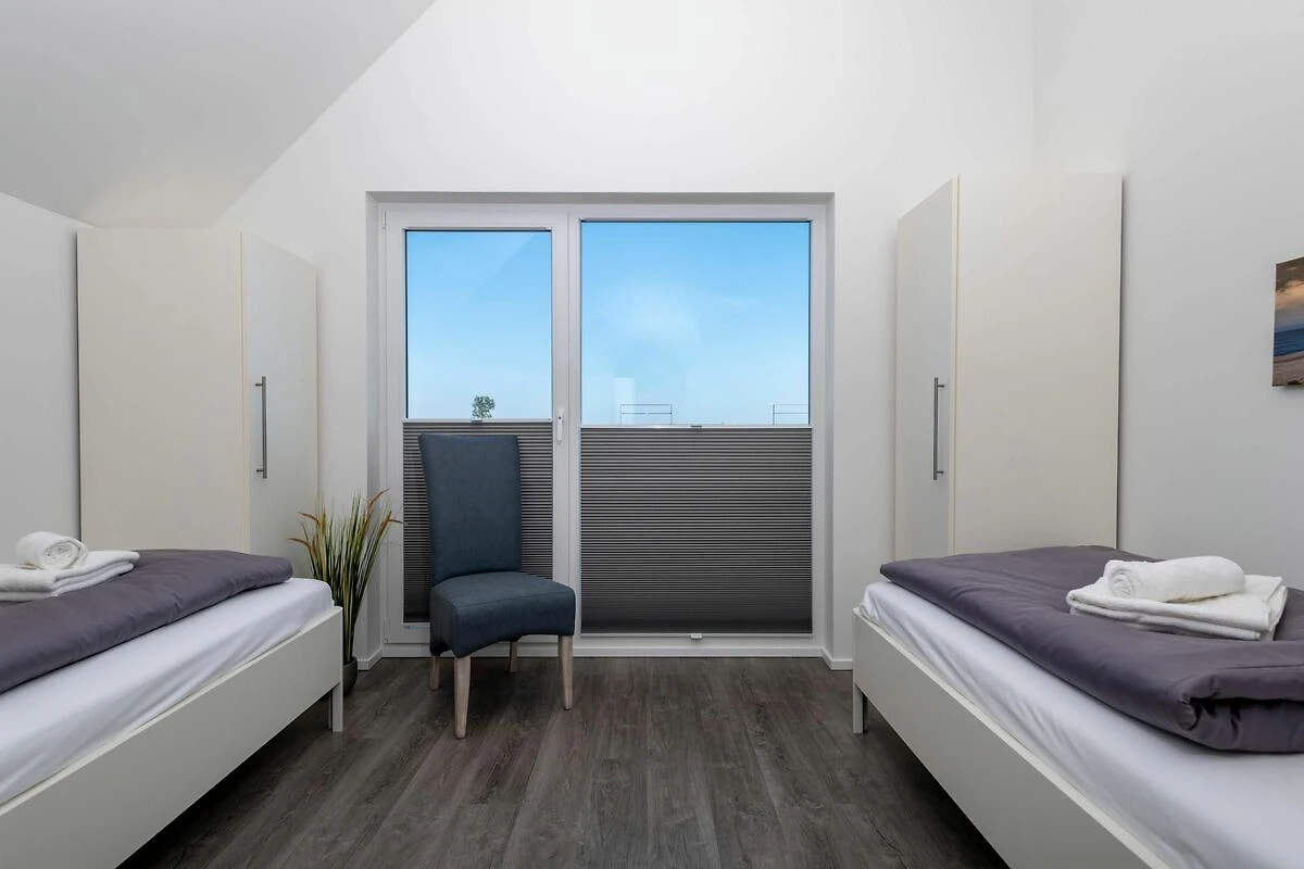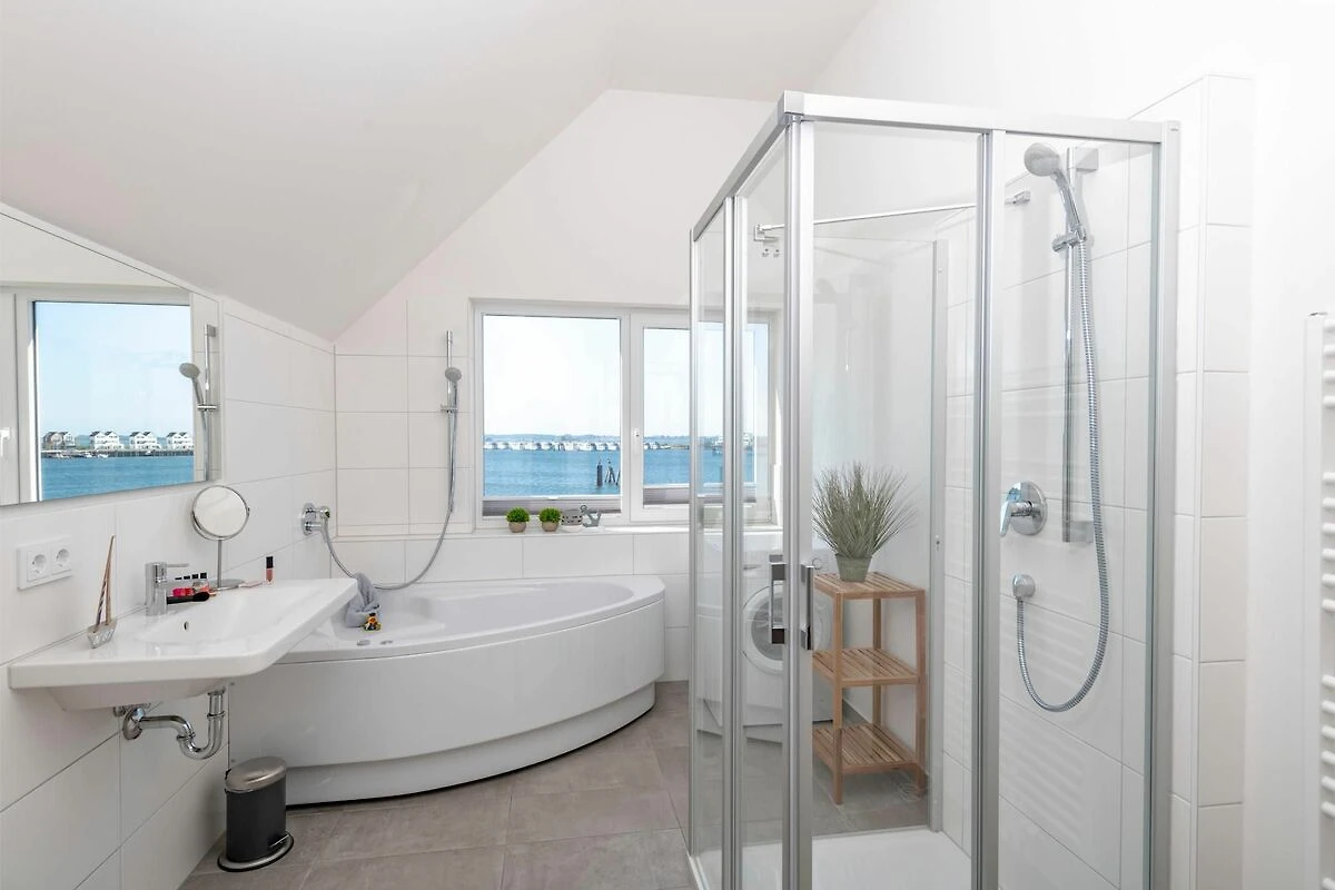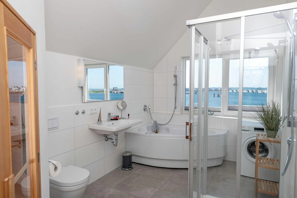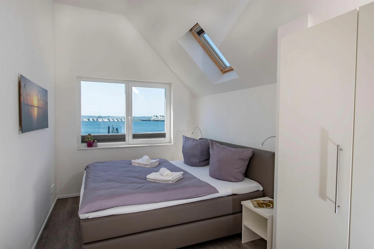 Ebene darüber liegen. Im Hauptschlafzimmer ist aufwachen und einschlafen bei direktem Ostseeblick angesagt. Zudem verfügt dieser Ruheraum über ein