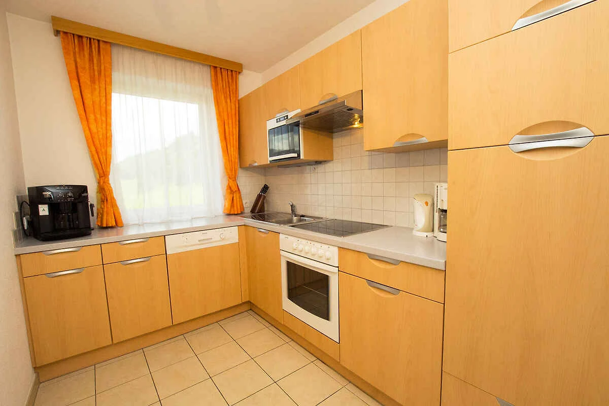 Wohn/Schlafzimmer mit 1 Zusatzbett auf Couch/Sofa, Sitzecke, TV und Zugang zum Balkon. 2 Schlafzimmer jeweils mit 1 Doppelbett. Küche mit Geschirrspüler, Kühlschrank, Mikrowelle, Kaffeemaschine, elektrischem Wasserkocher und Gas- oder E-Herd. Vorraum. Bad mit Dusche und Föhn. Separates WC mit WC.