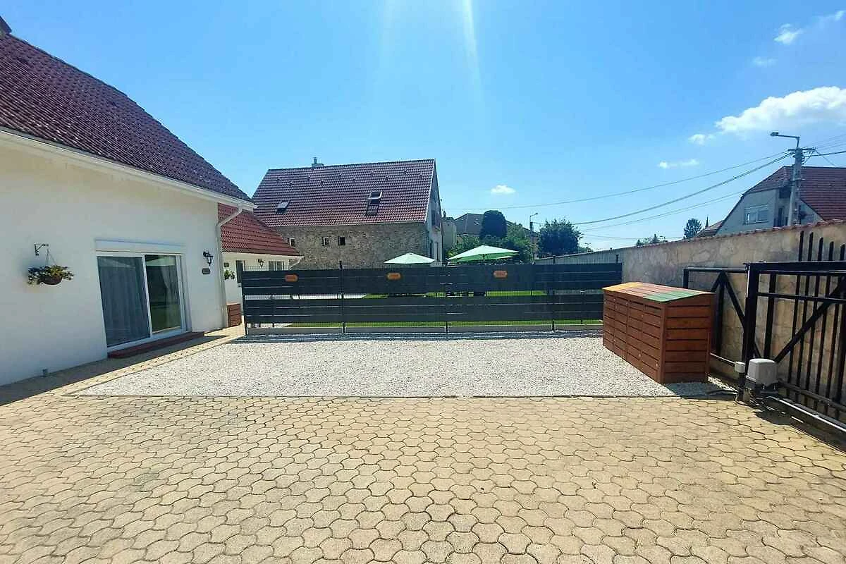 Bük. Die Ferienwohnung befindet sich auf einem geschlossenen Gartengrundstück mit Wiese, von einem Zaun begrenzt. Der Vermieter wohnt ständig in einem separaten Gebäude auf dem Grundstück. Die Zufahrt erfolgt direkt von der Hauptstrasse (asphaltiert). Parkplatz (für 1 Pkw) auf dem Grundstück.