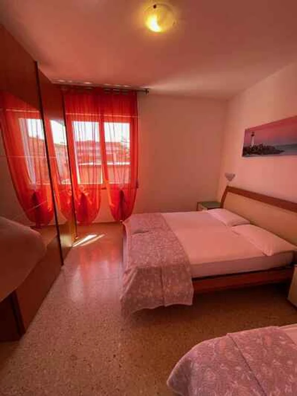 Bibione, Ortsteil Spiaggia. Die Ferienwohnung befindet sich auf einem offenen Grundstück. Der Vermieter wohnt nicht im Haus oder auf dem Grundstück. Die Zufahrt erfolgt über eine Nebenstrasse (asphaltiert).