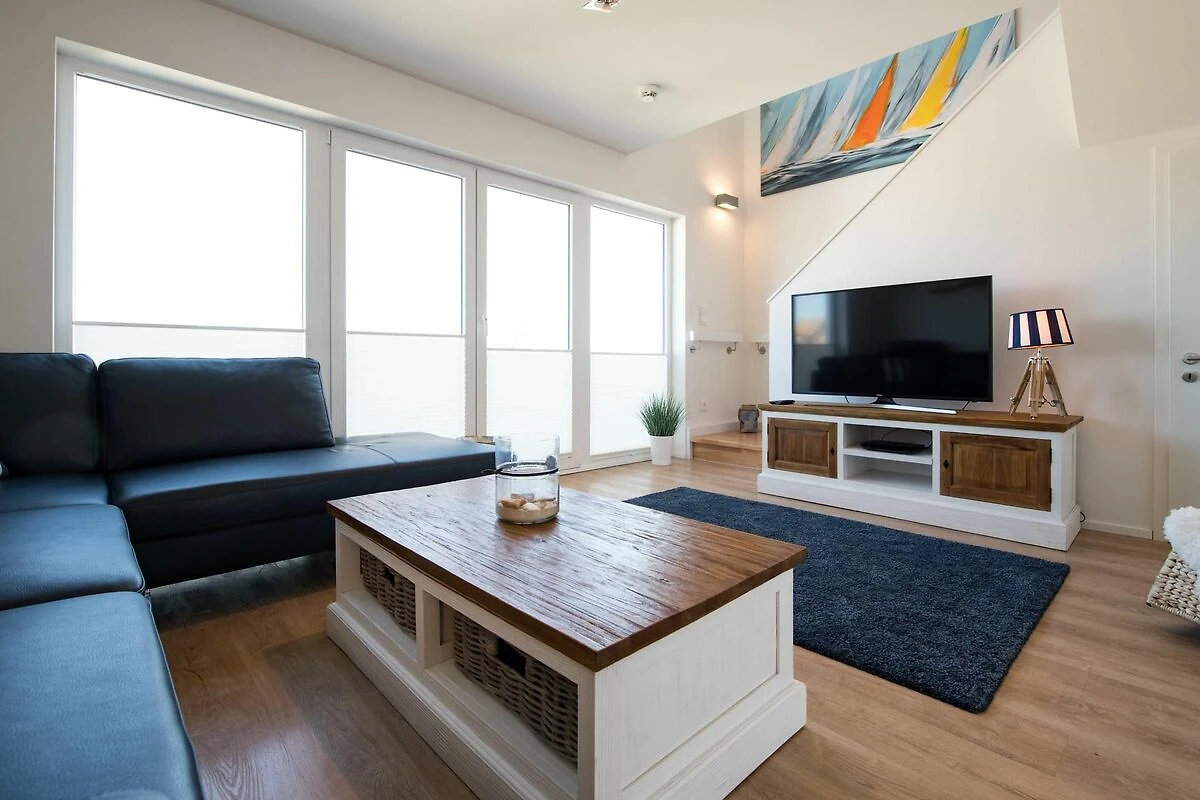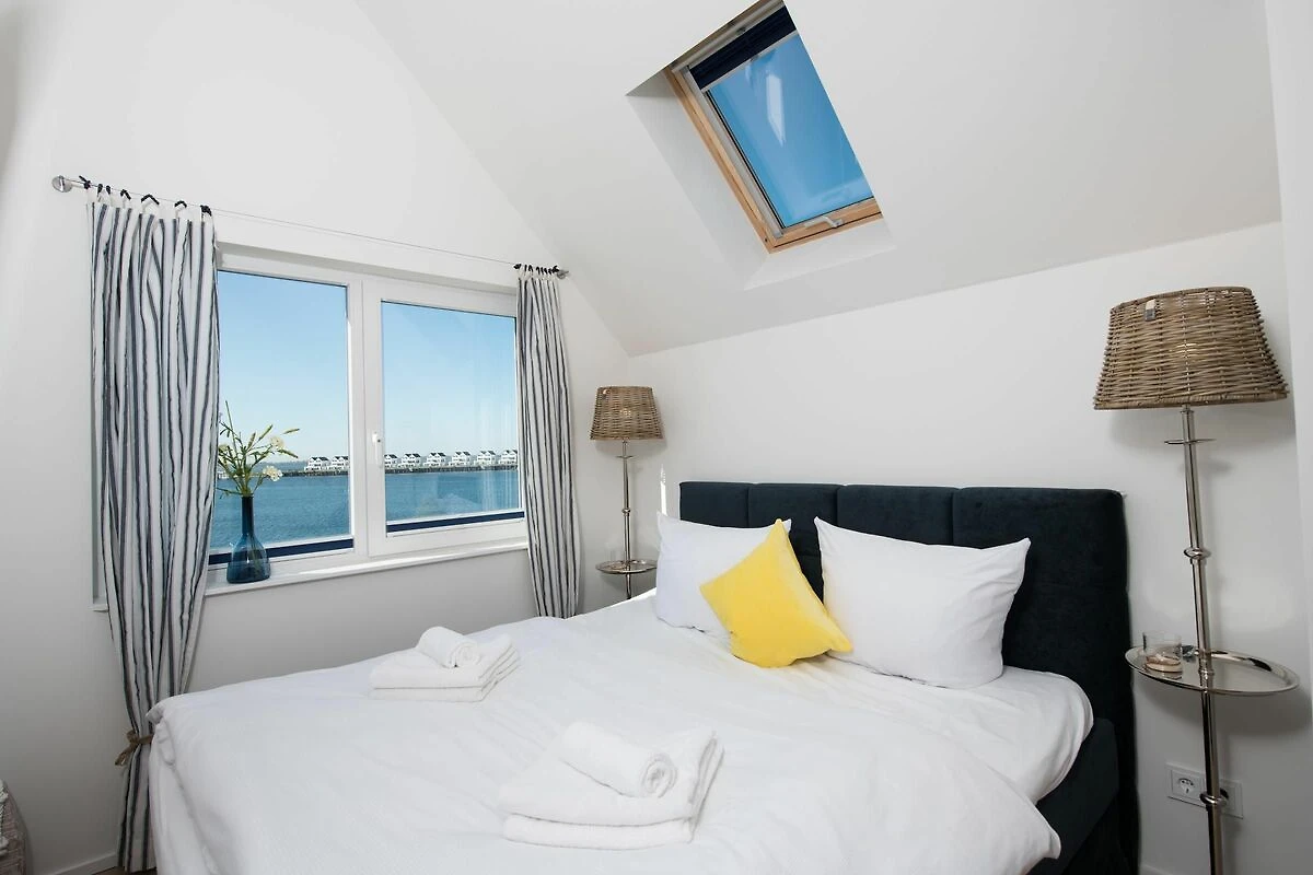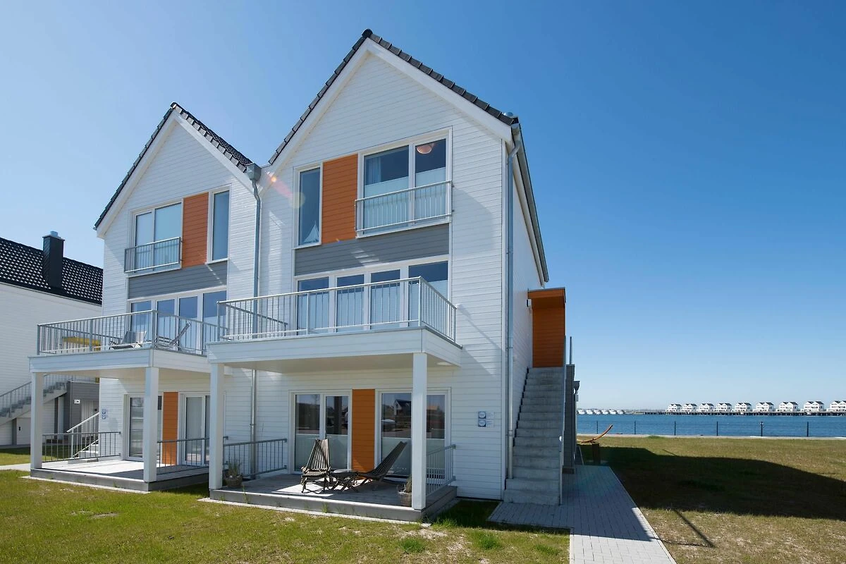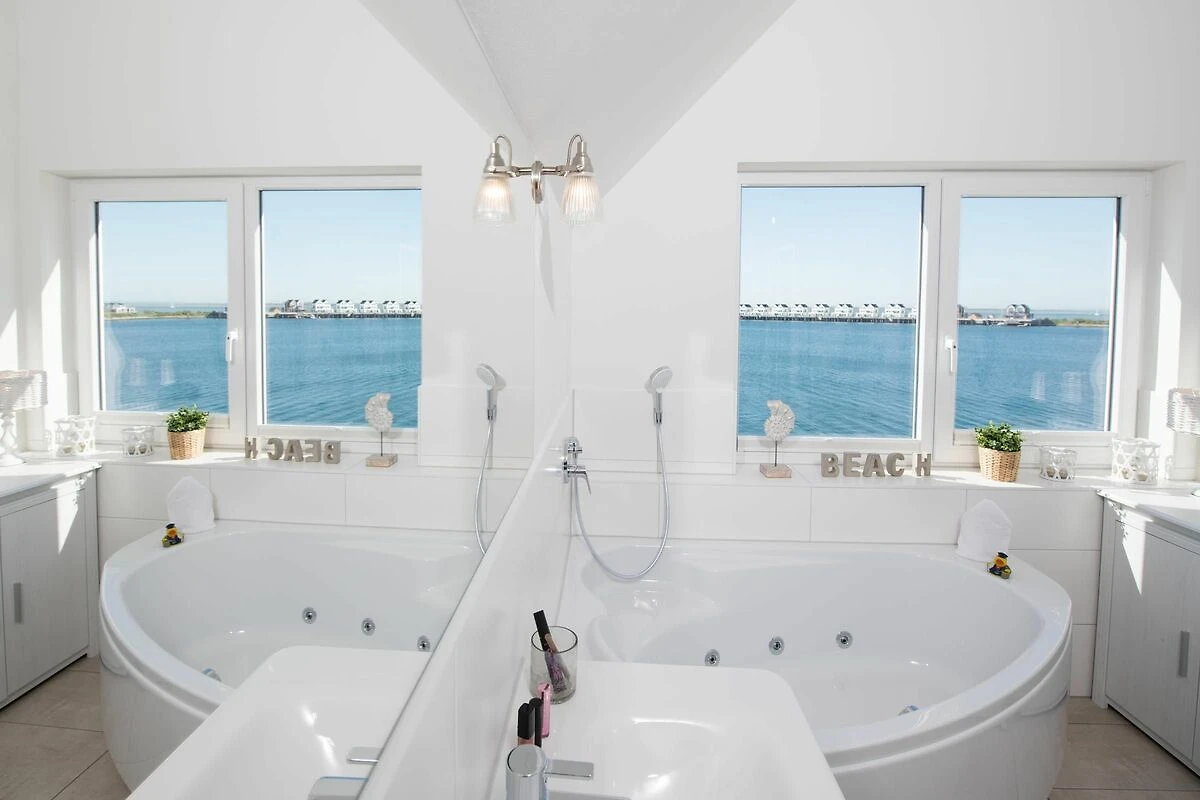 Die direkte Wasserlage, zwei Terrassen mit Morgen- und Abendsonne, ein privater Wellness Bereich und die unmittelbare Nähe zum Weidefelder Sandstrand lassen Urlaubsherzen in diesem Ferienobjekt höher schlagen. Auch die Hafenpromenade des OstseeResort Olpenitz befindet sich in unmittelbarer Nähe. Das ganze Objekt ist mit Fußbodenheizung ausgestattet. Sauna, Whirlwanne und Kaminofen versprechen Komfort zu jeder Jahreszeit.Offen und großzügig gestaltet mit hohen Decken erstreckt sich das Ferienobjekt über zwei Ebenen. Lichtdurchflutet gestaltet sich der Wohn- Essbereich des Ferienobjekts auf der ersten Ebene mit bodentiefen Panorama-Fensterfronten zu den anliegenden Terrassen auf beiden Seiten. Traumhafte Aussichten eröffnen sich auf der an den Wohnbereich angrenzenden Terrasse mit Blick über den Segel- und Sportboothafen des OstseeResort Olpenitz. Hafenkino sorgt hier für Unterhaltung während eines geselligen Grillabends oder romantischen Candle-Light-Dinners bei traumhaften Sonnenuntergängen. Für Indoor-Entertainment sorgt derweil der TV mit Telekom Home Entertainment Programm.