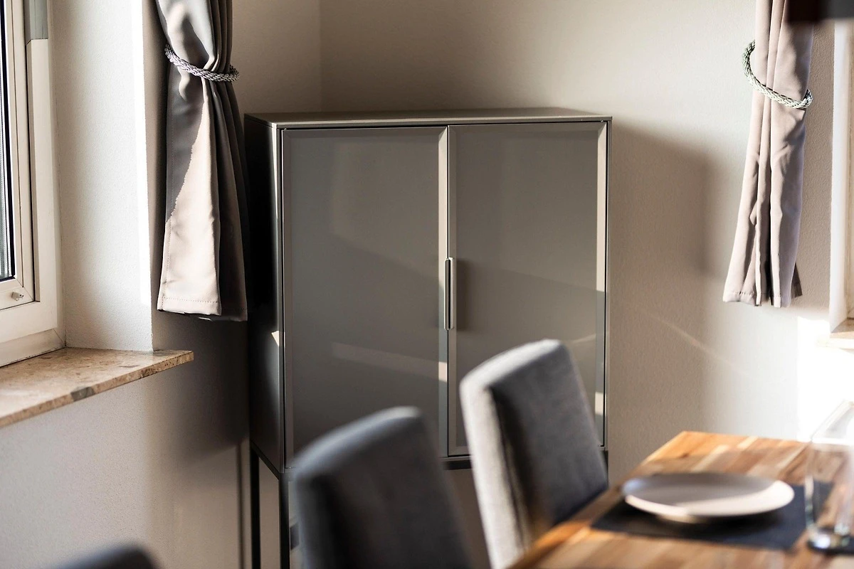 Diese Ferienwohnung bietet eine stilvolle und komfortable Unterkunft für individuelle Bedürfnisse. Die beiden Schlafzimmer sind geschmackvoll eingerichtet, eines mit einem Doppelbett und das andere mit zwei Einzelbetten, ideal für Familien oder Gruppen. Die separate Küche ist mit modernen Geräten ausgestattet, darunter ein Geschirrspüler, ein Elektro-/Gasherd, ein Backofen, eine Mikrowelle, ein Kühlschrank, eine Kaffeemaschine, ein Wasserkocher und ein Toaster. Hier können Gäste ihre kulinarischen Fähigkeiten entfalten.