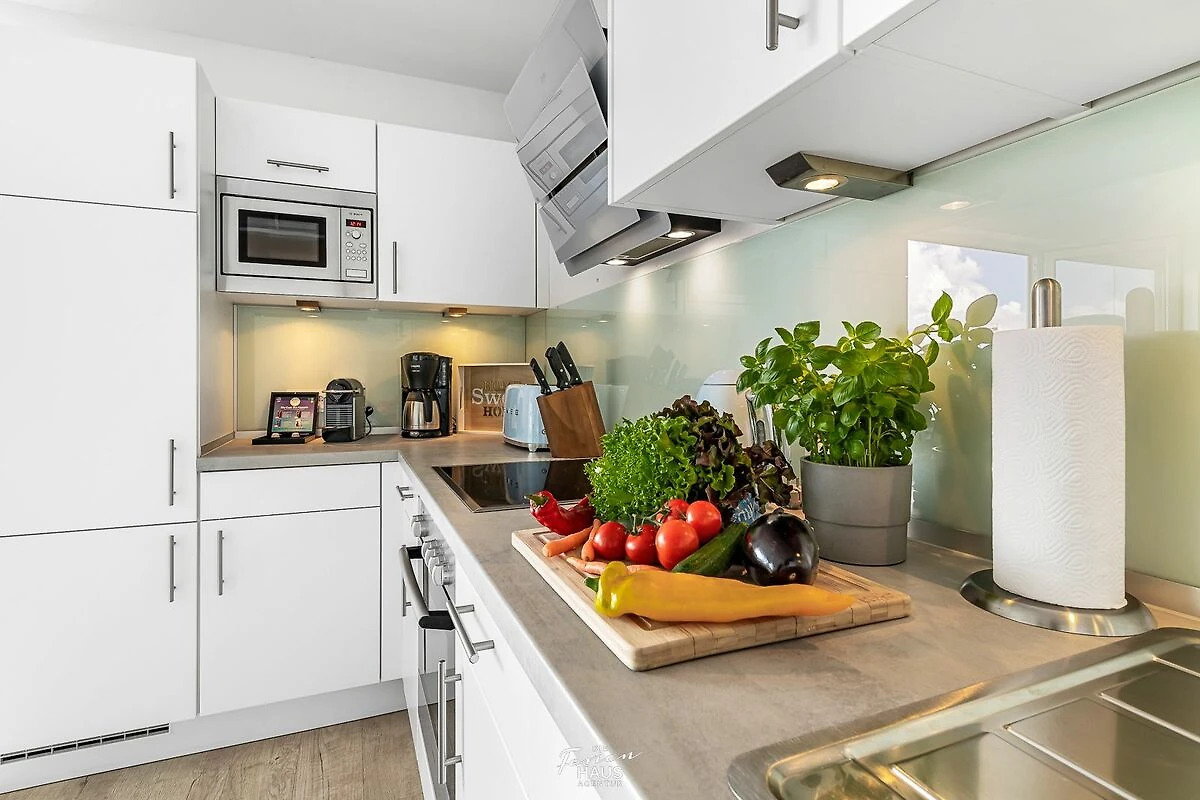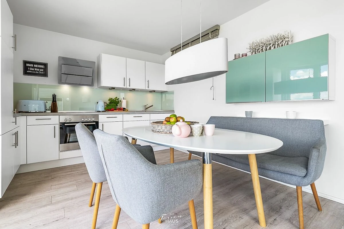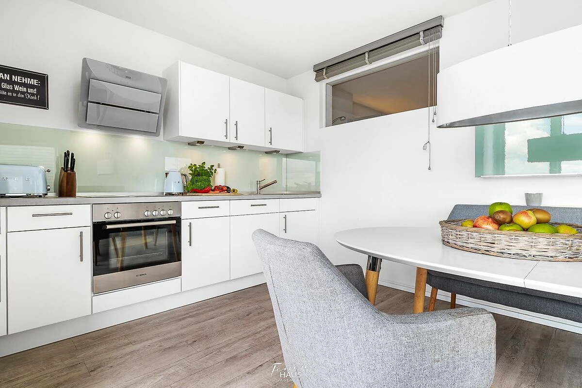 Im Urlaub ist Zeit für kreatives Kochen – die rundum ausgestattete Wohnküche lässt hierbei keine Wünsche offen. Frühstücken bei Morgensonne auf der Terrasse – Urlaubsfeeling pur.