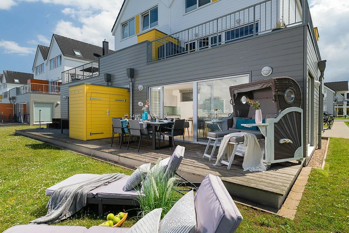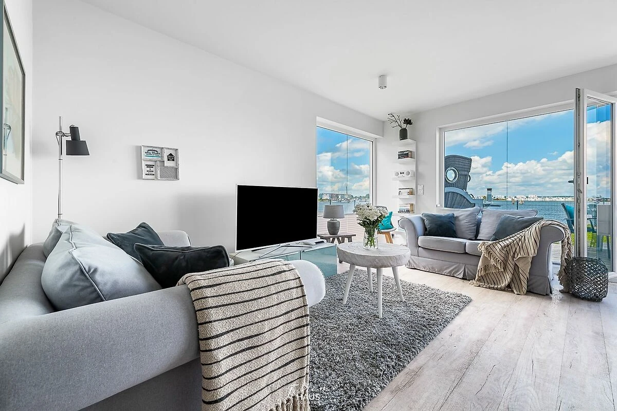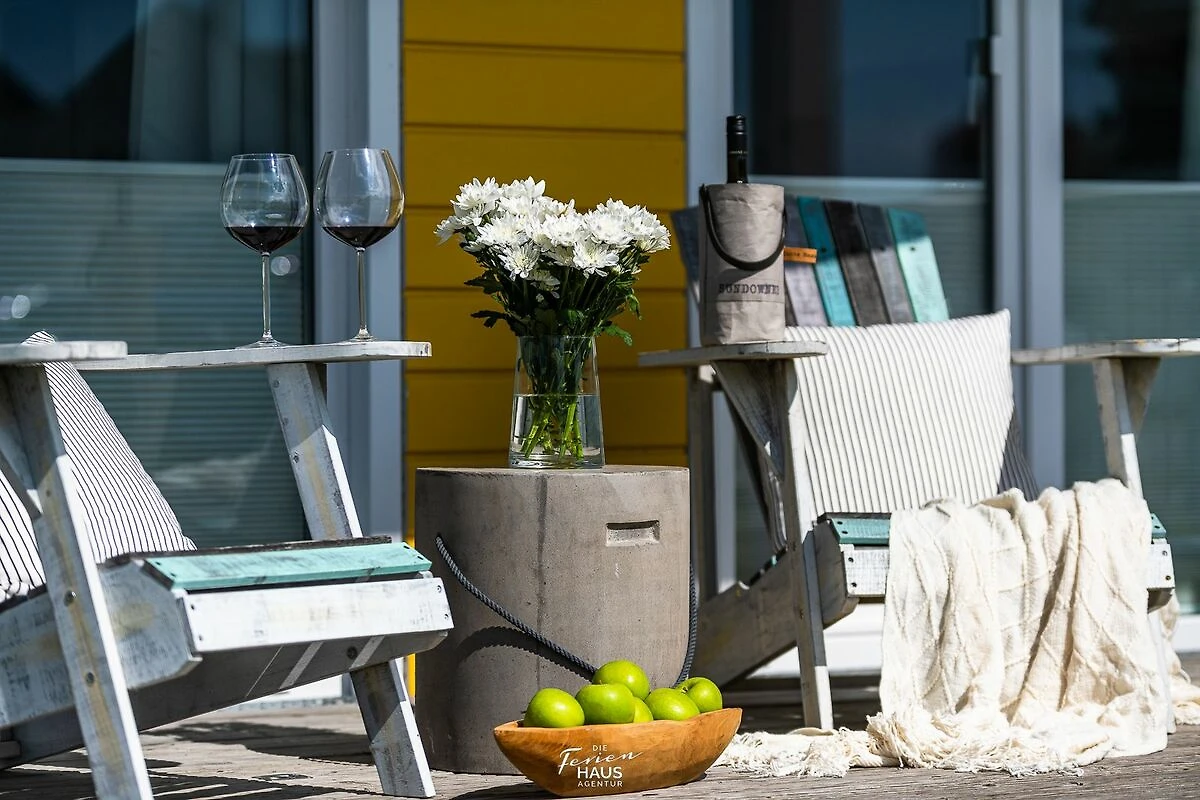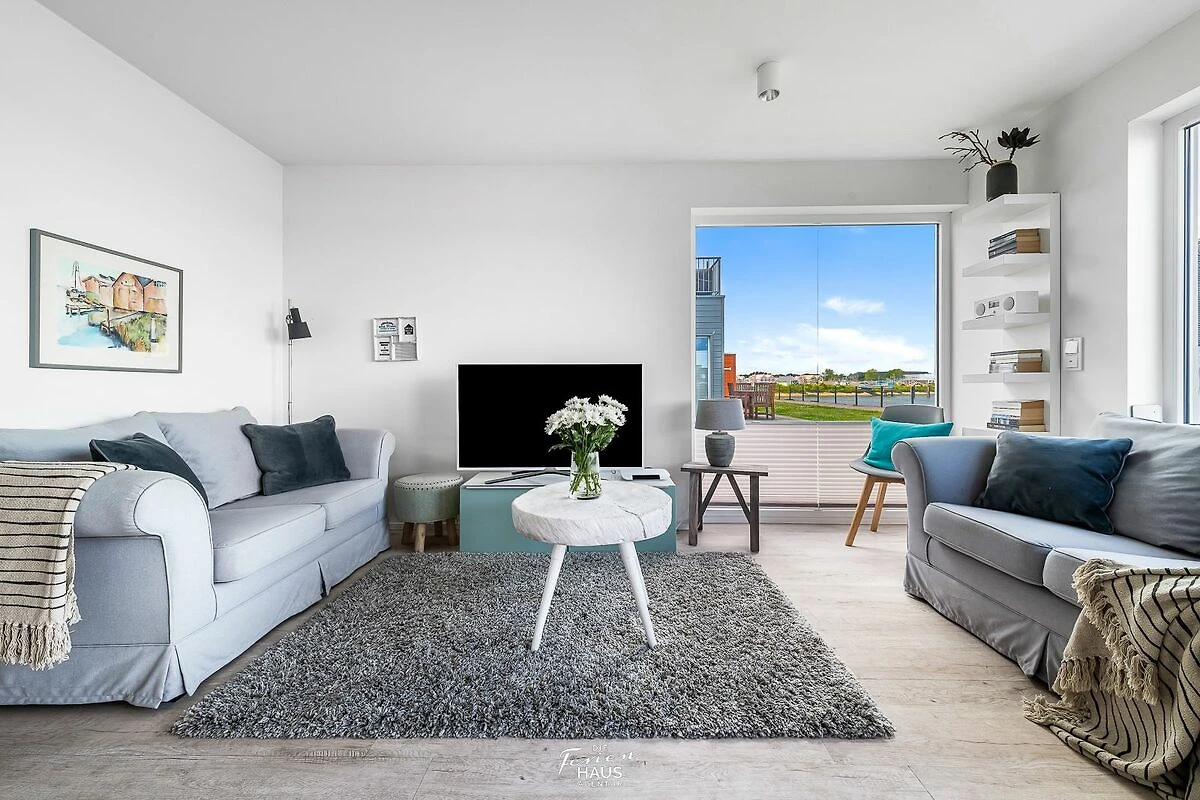 Traumhafte Aussichten eröffnen sich aus dem Wohnbereich und auf der angrenzenden Terrasse mit Blick über den Segel- und Sportboothafen des OstseeResort Olpenitz. Hafenkino sorgt hier für Unterhaltung während eines geselligen Grillabends oder romantischen Candle-Light-Dinners bei Sonnenuntergang.