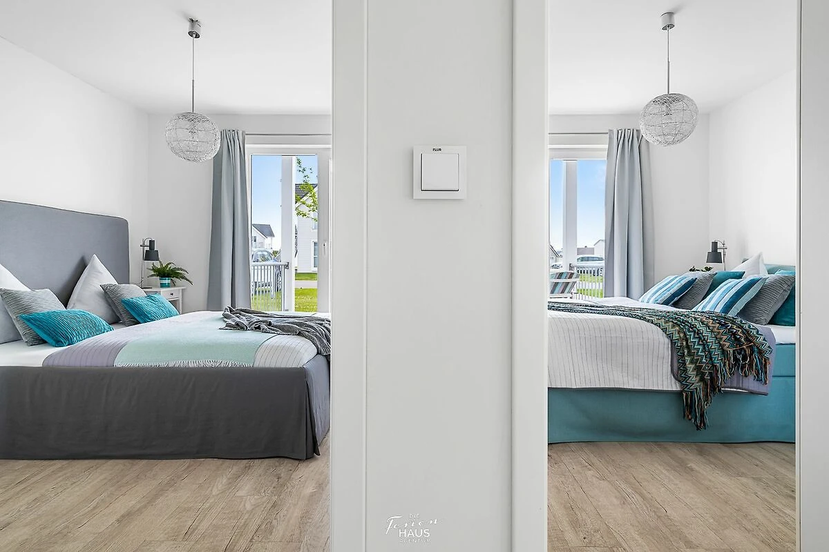 Hochwertig ausgestattet und liebevoll eingerichtet gestalten sich auch die beiden Schlafzimmer mit Zugang zur Ostterrasse. Zwei komfortable Wohlfühl-Doppelbetten bieten vier Personen Platz zum Schlafen und Träumen. Und wer im Urlaub früh und ausgeschlafen erwacht, der darf auf der angrenzenden Terrasse bilderbuchreife Sonnenaufgänge beobachten.