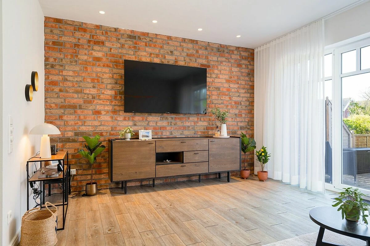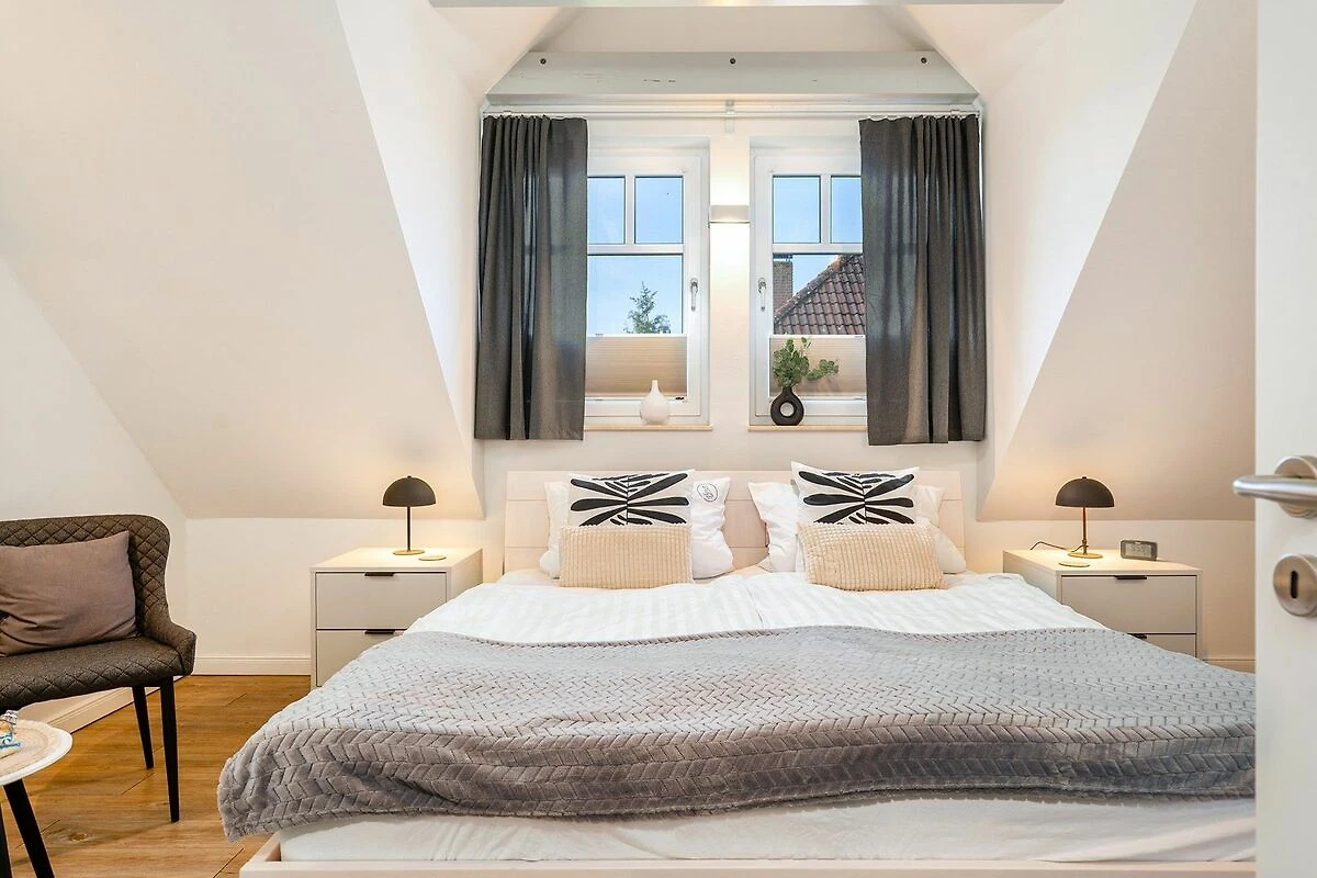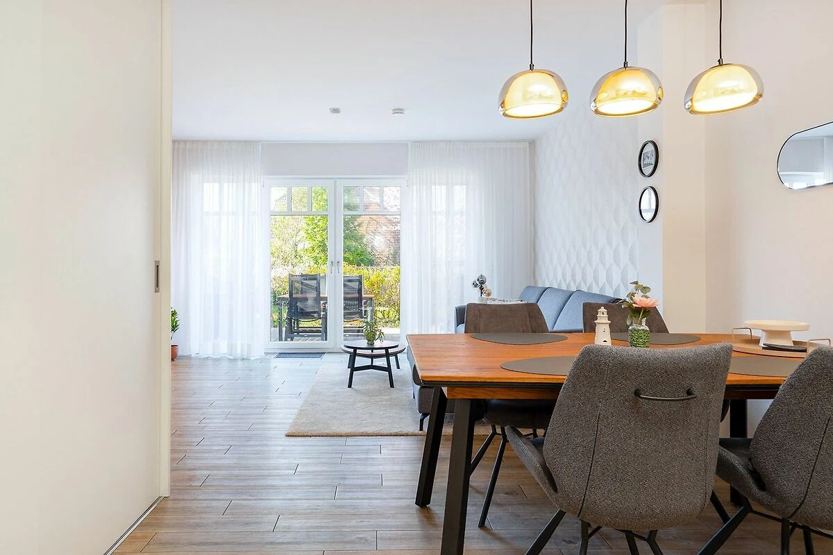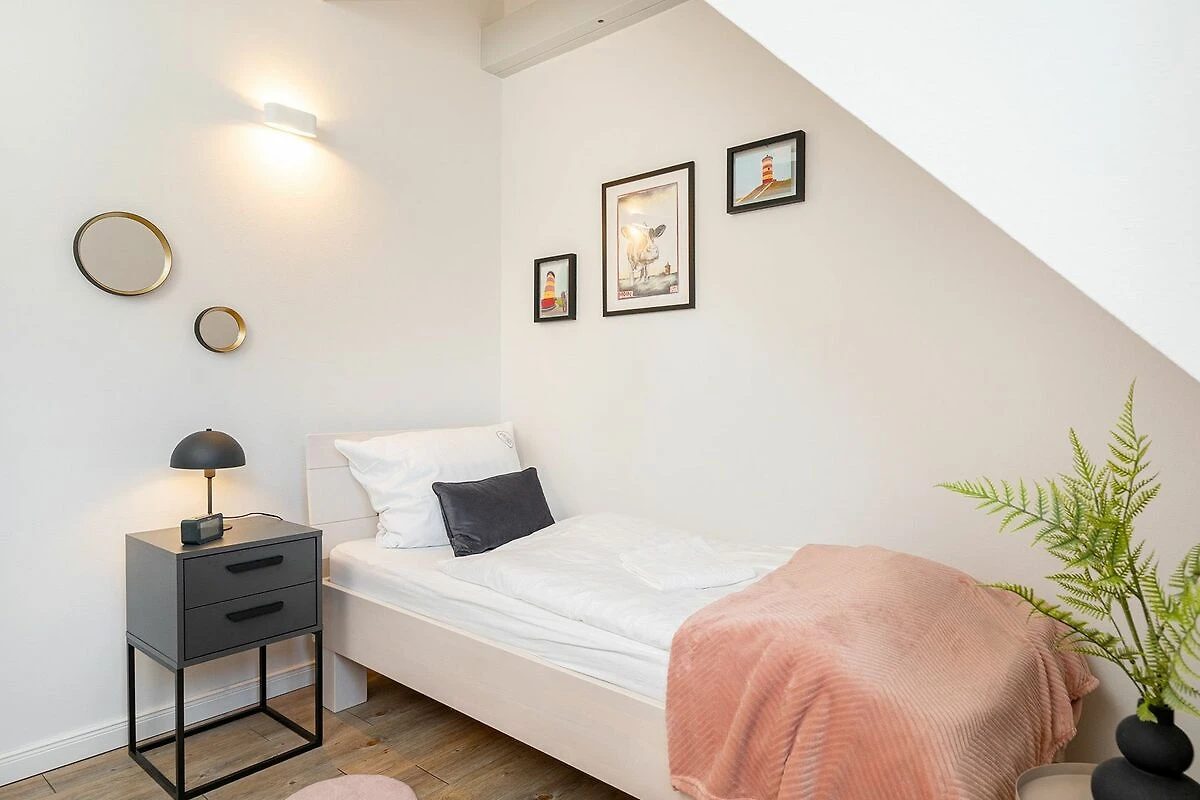 Das frisch renovierte Reihenmittelhaus Lütt Wulkje (ehemals Brigg) in der zentral gelegenen Dollartstrasse bietet den perfekten Ausgangspunkt für einen entspannten und erlebnisreichen Urlaub an der Nordseeküste. Mit 80qm Wohnfläche ist dieses liebevoll gestaltete Ferienhaus ideal für Familien oder Paare, die eine gemütliche und moderne Unterkunft suchen. Im Erdgeschoss erwartet Sie ein grosszügiger, offener Wohnbereich mit gemütlicher Sofalandschaft sowie einer Einbauküche. Weiterhin finden Sie ein modernes Tageslichtbad mit ebenerdiger Dusche sowie einen praktischen Abstellraum mit Waschmaschine. Im Obergeschoss befinden sich zwei behagliche Schlafzimmer, eins mit komfortablen Doppelbett sowie eins mit zwei Einzelbetten, ideal für Kinder oder Freunde. Ein weiteres Tageslichtbad auf dieser Etage macht die Ausstattung des Hauses perfekt und bietet eine angenehme Privatsphäre für alle Gäste. Die Terrasse mit kleinem Garten für entspannte Stunden bei einer Tasse Tee gehört, neben einem Gemeinschaftsgarten für die drei nebeneinander gelegenen Ferienhäuser, zu Ihrem Feriendomizil dazu. Auch ein privater Parkplatz steht selbstverständlich zur Verfügung.