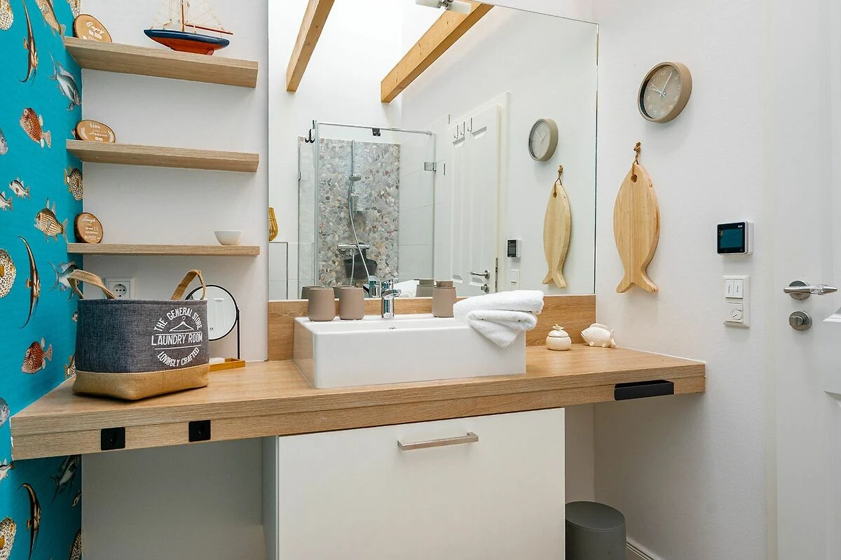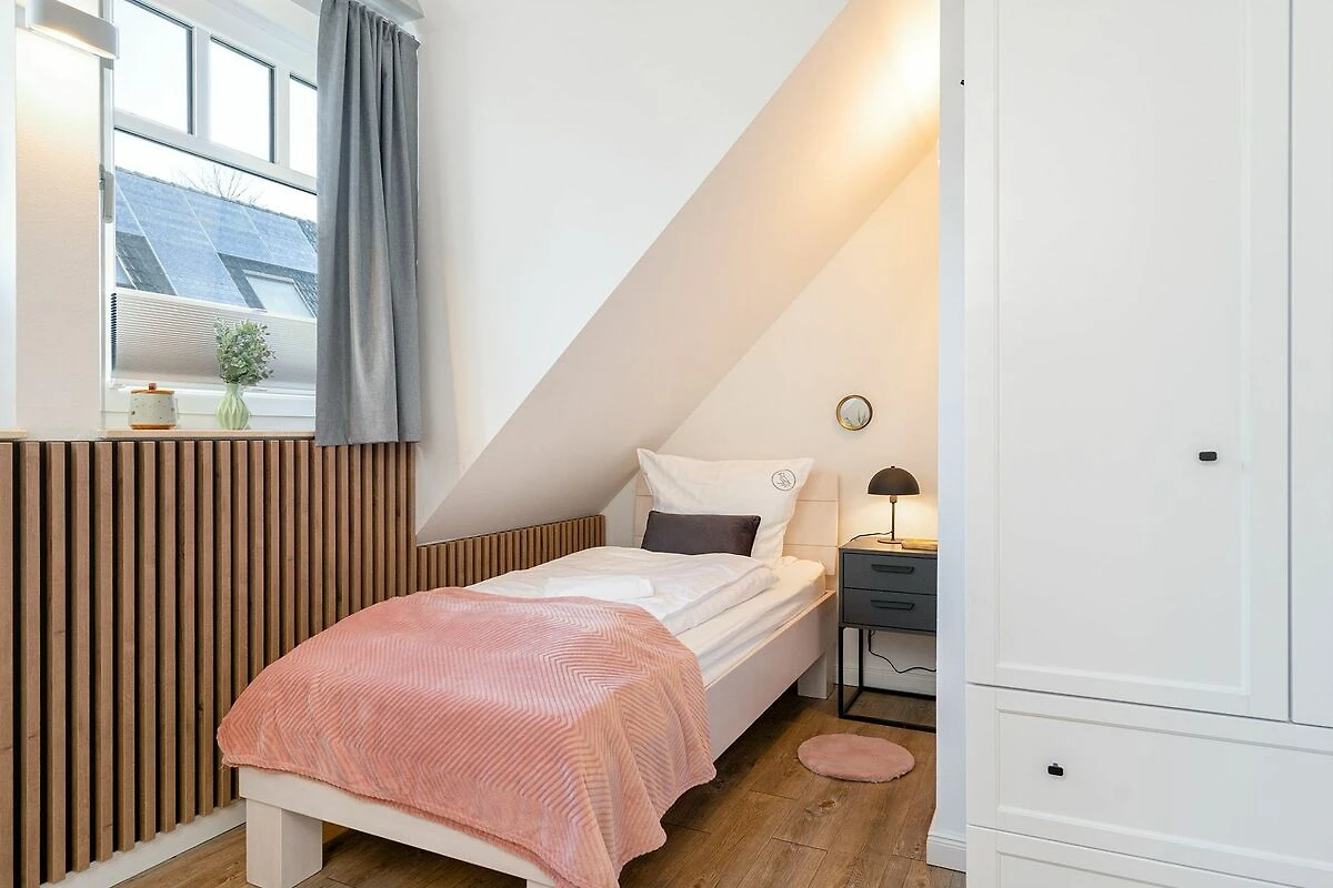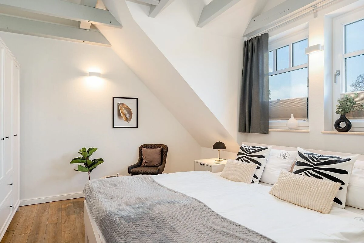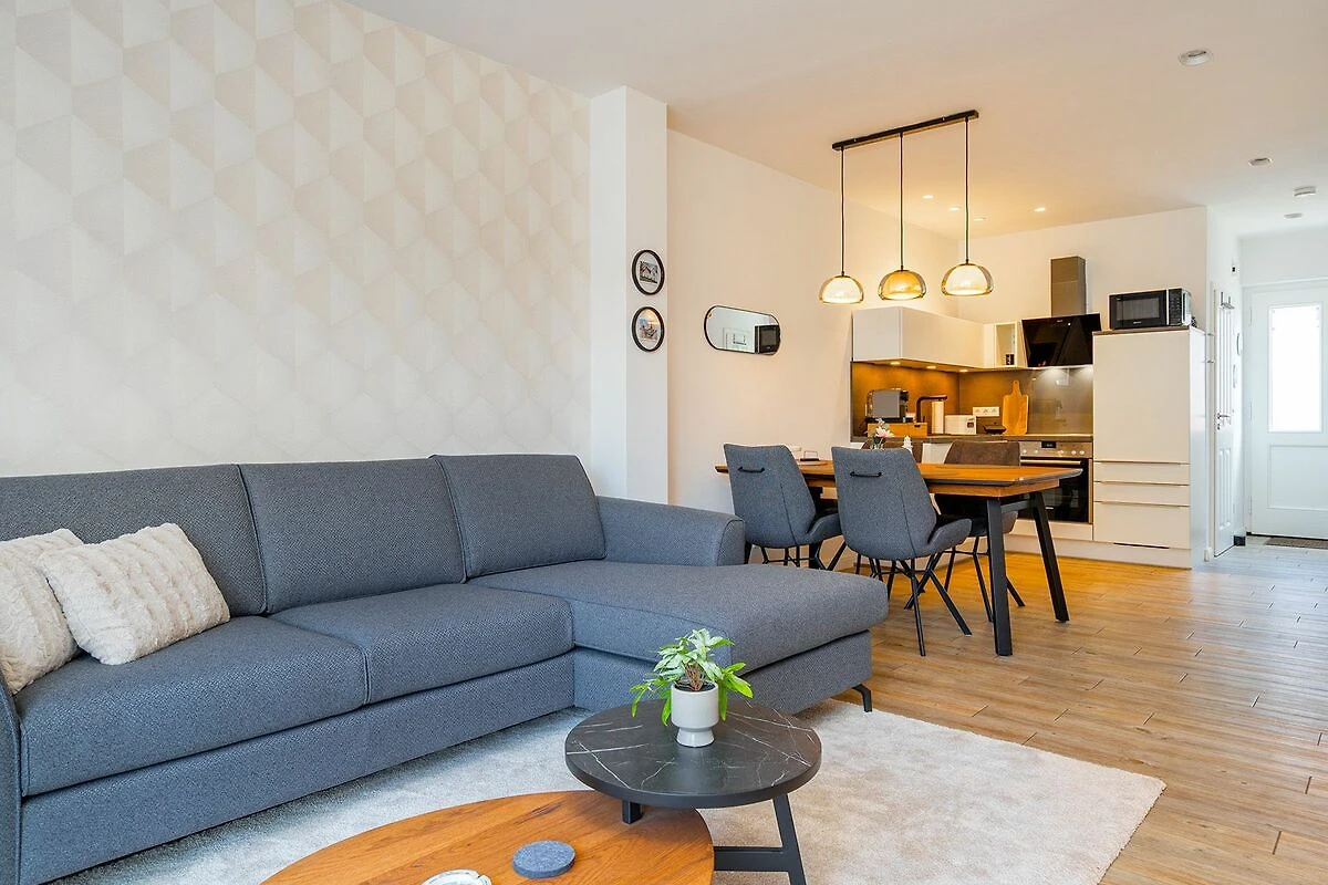 Das frisch renovierte Reihenmittelhaus Lütt Wulkje (ehemals Brigg) in der zentral gelegenen Dollartstrasse bietet den perfekten Ausgangspunkt für einen entspannten und erlebnisreichen Urlaub an der Nordseeküste. Mit 80qm Wohnfläche ist dieses liebevoll gestaltete Ferienhaus ideal für Familien oder Paare, die eine gemütliche und moderne Unterkunft suchen. Im Erdgeschoss erwartet Sie ein grosszügiger, offener Wohnbereich mit gemütlicher Sofalandschaft sowie einer Einbauküche. Weiterhin finden Sie ein modernes Tageslichtbad mit ebenerdiger Dusche sowie einen praktischen Abstellraum mit Waschmaschine. Im Obergeschoss befinden sich zwei behagliche Schlafzimmer, eins mit komfortablen Doppelbett sowie eins mit zwei Einzelbetten, ideal für Kinder oder Freunde. Ein weiteres Tageslichtbad auf dieser Etage macht die Ausstattung des Hauses perfekt und bietet eine angenehme Privatsphäre für alle Gäste. Die Terrasse mit kleinem Garten für entspannte Stunden bei einer Tasse Tee gehört, neben einem Gemeinschaftsgarten für die drei nebeneinander gelegenen Ferienhäuser, zu Ihrem Feriendomizil dazu. Auch ein privater Parkplatz steht selbstverständlich zur Verfügung.