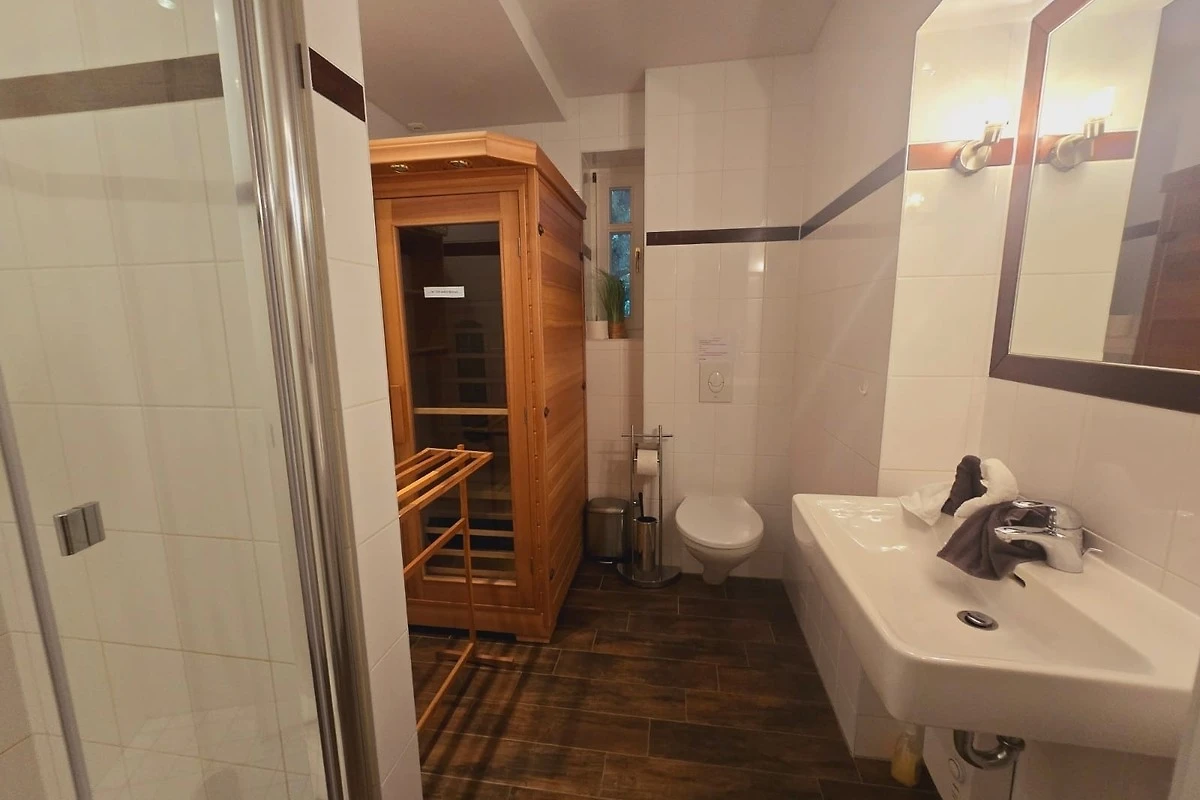 Des weiteren finden Sie im Keller des Hauses Waschmaschinen die Sie gegen eine Gebühr gerne mitbenutzen können, so wie eine Tischtennisplatte und einen abschliessbaren Fahrradraum für alle Gäste.