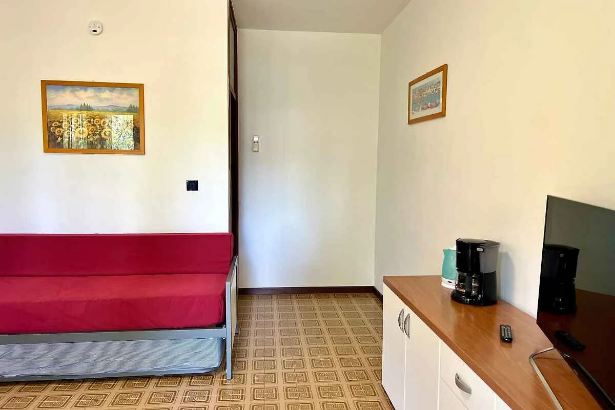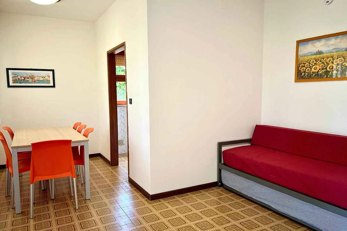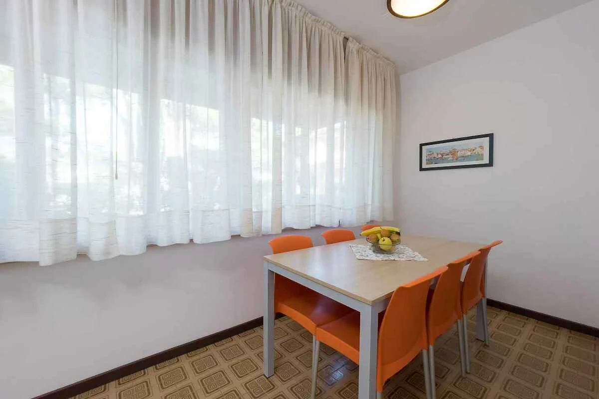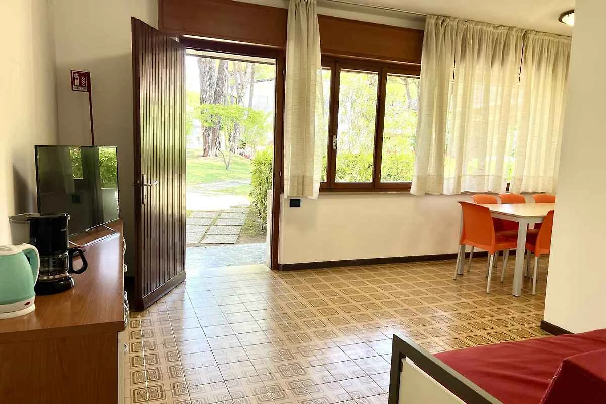 Lignano, Ortsteil Pineta. Die Ferienwohnung befindet sich auf einem geschlossenen Gartengrundstück, von einem Zaun begrenzt. Der Vermieter wohnt nicht im Haus oder auf dem Grundstück. Im Haus befinden sich insgesamt 4 FerienWohnungen. Parkplatz (für 1 Pkw) auf dem Grundstück.