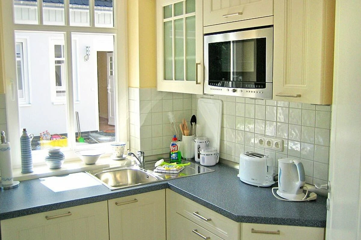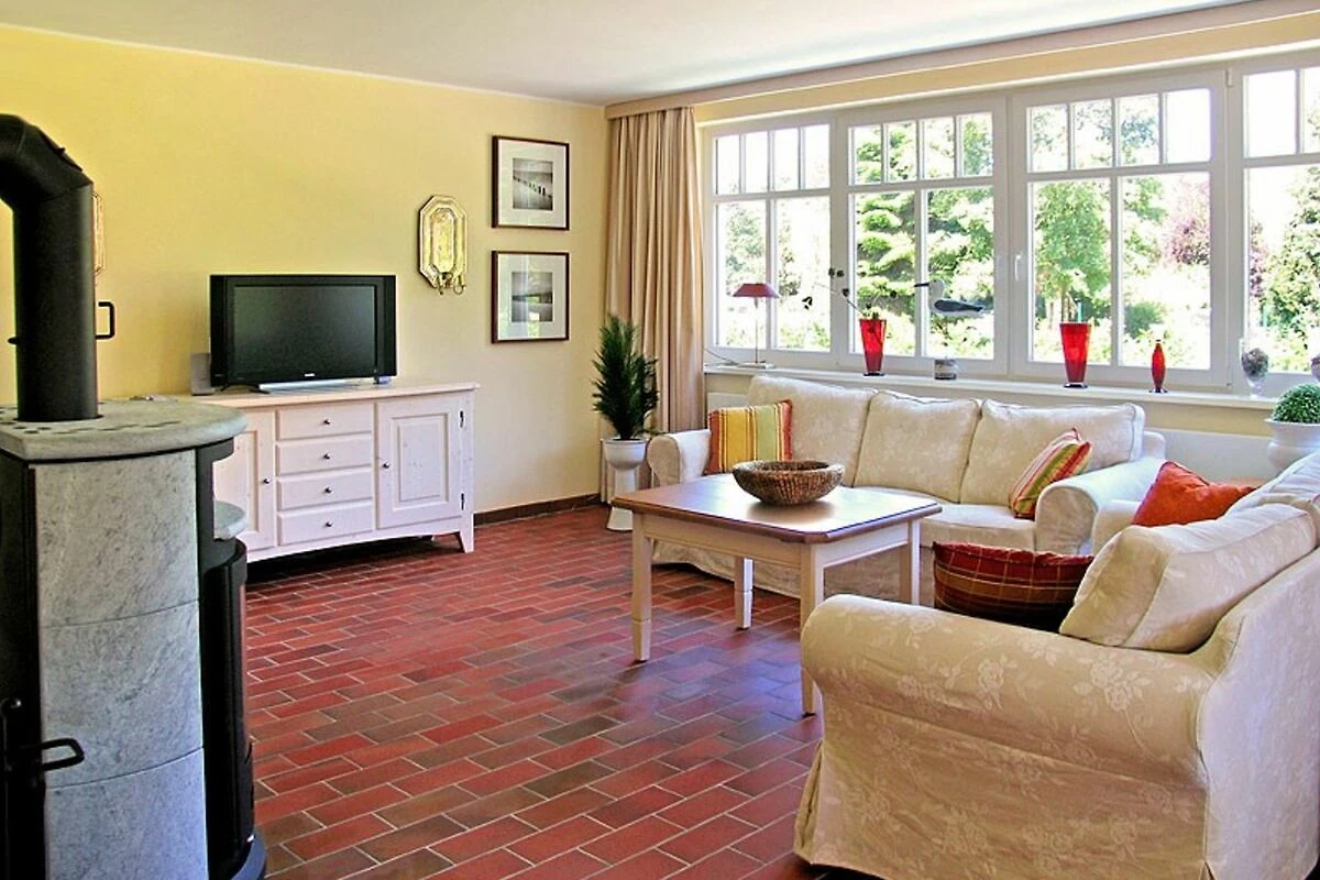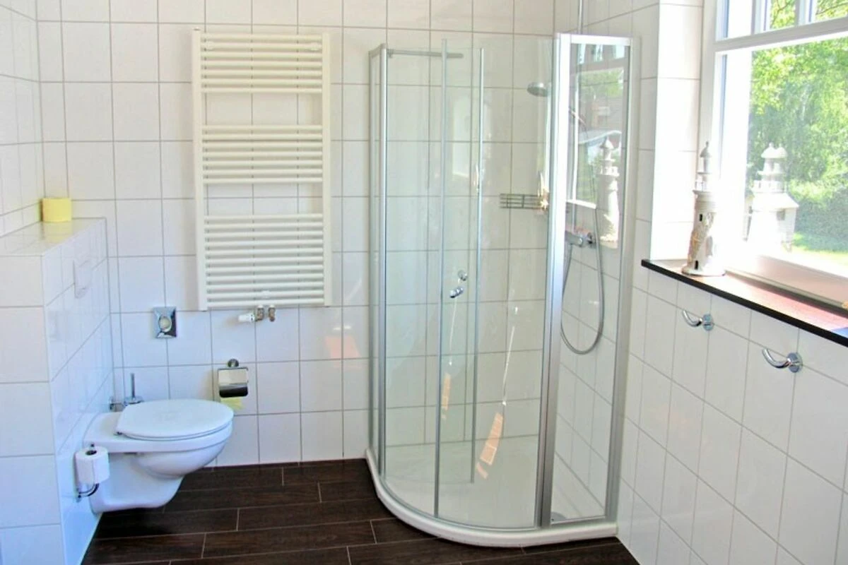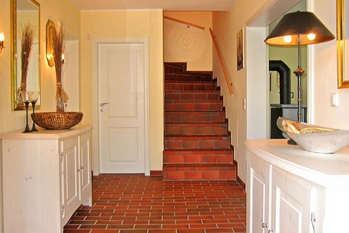 Das Ferienhaus ist eine Doppelhaushälfte mit zweihundertfünfzig qm Grundstück zur alleinigen Nutzung. Das Ferienhaus hat zwei Etagen, vier Zimmer (davon drei Schlafzimmer) und zwei Bäder, ist mit max. sechs Personen belegbar. Zur Nutzung stehen zur Verfügung: Terrasse, Liegewiese, Sonnenschirm, Gartenmöbel und Grillmöglichkeit. Parkmöglichkeit für zwei Pkw auf dem Grundstück. Küchenausstattung: Elektroherd (vier Platten), Backofen, Abzugshaube, Geschirrspüler, Kühlschrank mit Eisfach, Mikrowelle, Kaffeemaschine, Toaster und Wasserkocher. Ein Bad (im EG) ist mit Badewanne, Dusche, zwei Waschbecken, WC, Föhn und Fenster. Bad im Obergeschoss mit Dusche, ein Waschbecken, WC und Fenster. Kinderstuhl ist vorhanden. Fernsehempfang via Satellit.