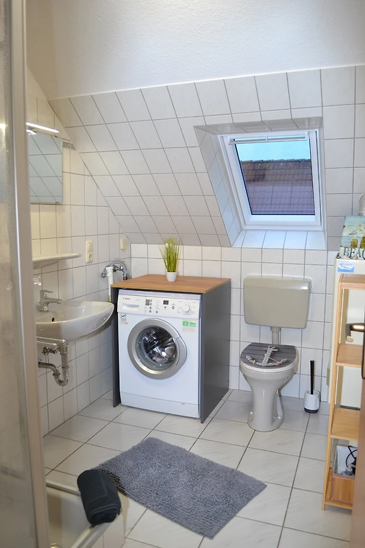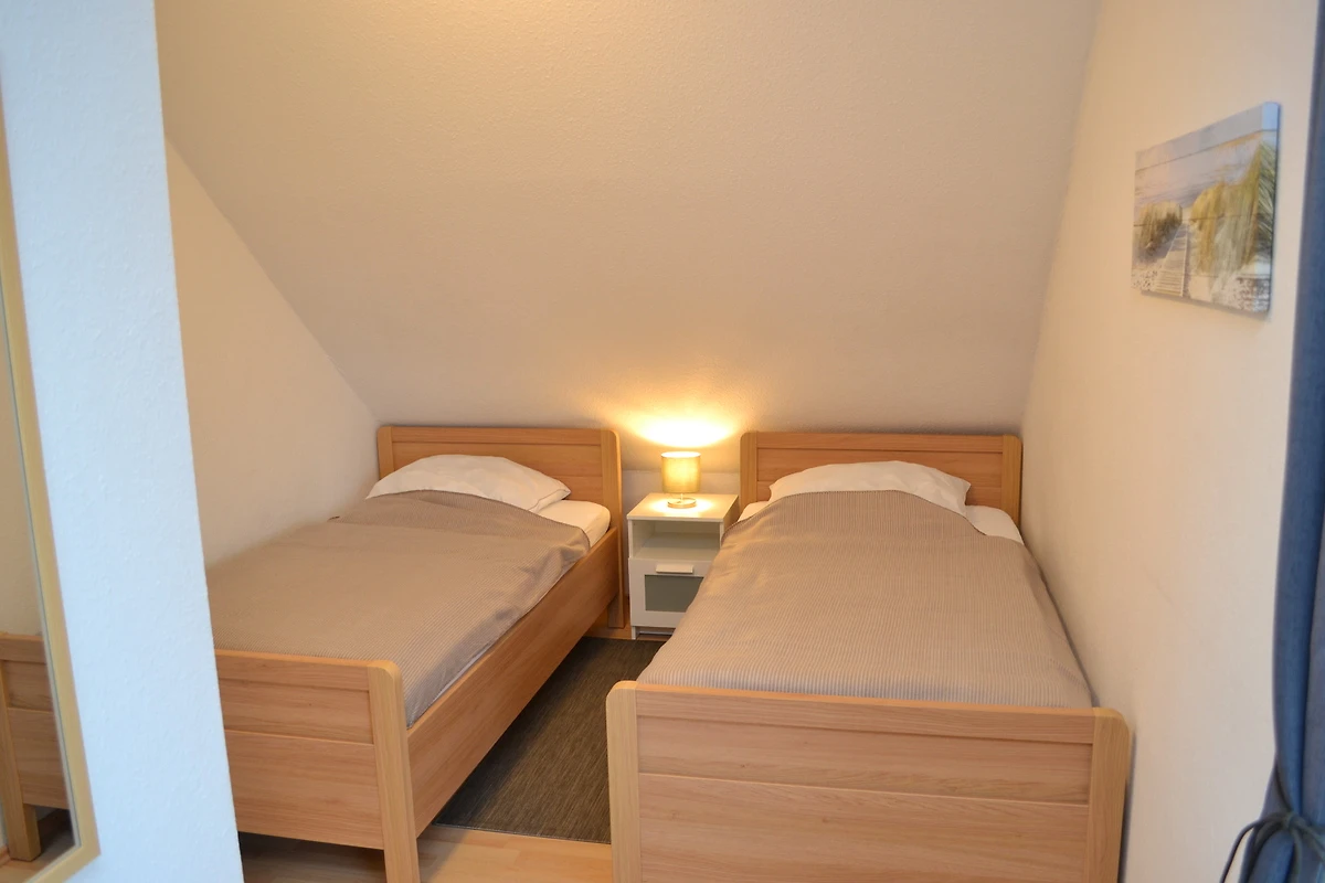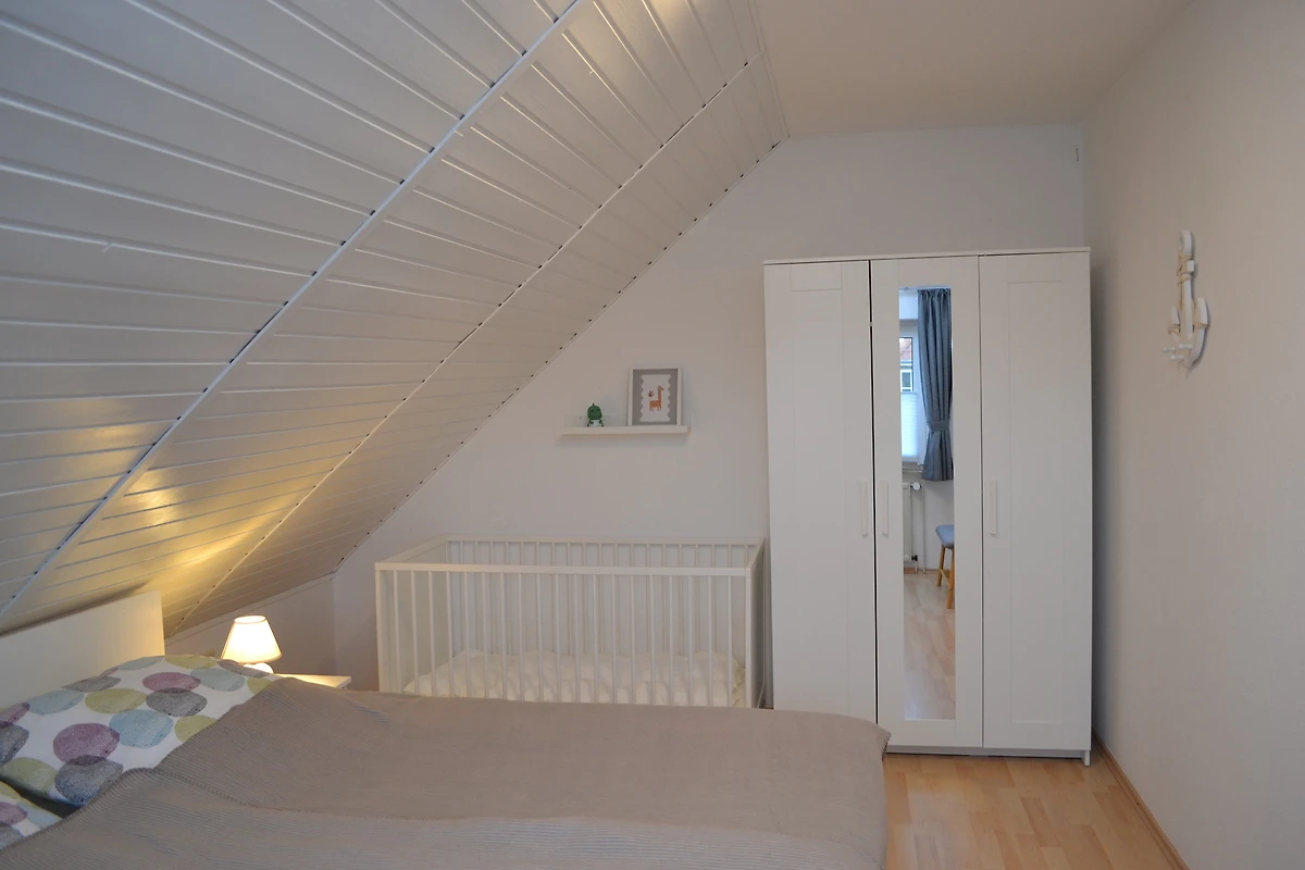 Im Erdgeschoss erwartet Sie ein Wohn- und Essbereich und eine Gästetoilette. Im Obergeschoss befinden sich zwei Schlafzimmer (1x Doppelbett + Kinderbett, 1x mit 2 Einzelbetten) sowie ein helles Badezimmer mit Duschkabine, WC und Waschmaschine.
