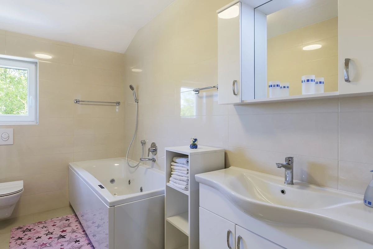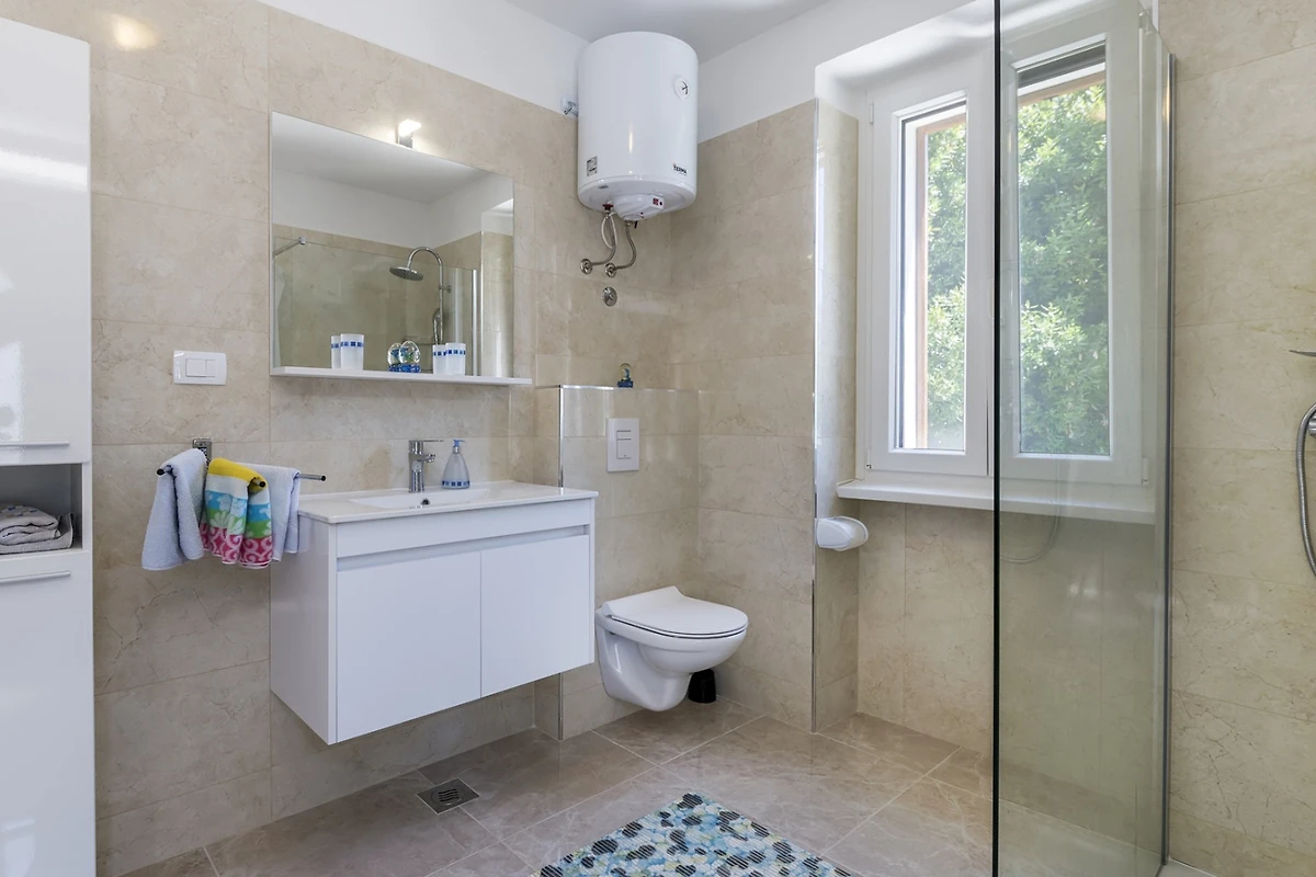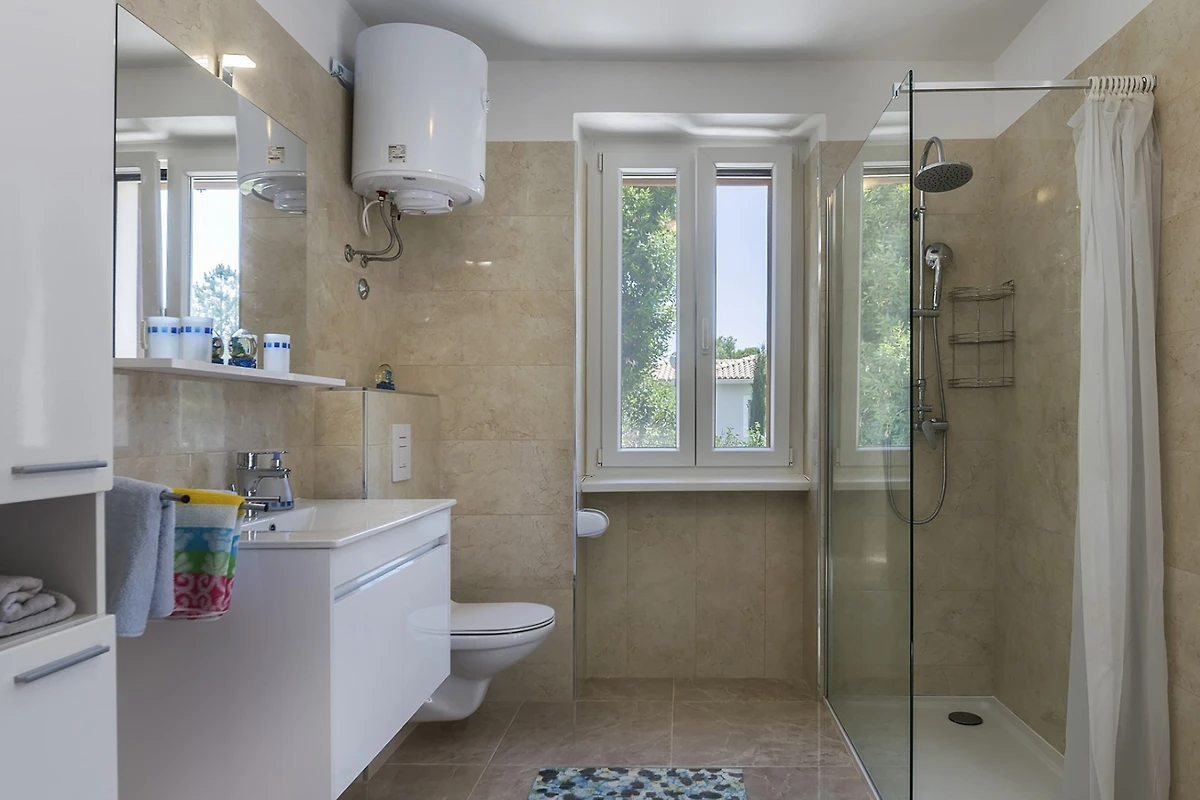Villa Ana befindet sich im Viertel Katuri in der istrischen Stadt Labin. Diese moderne Villa mit Swimmingpool kann bis zu 12 Personen beherbergen und ist von einem grünen Garten von 4000 m² umgeben. Das Grundstück der Villa ist komplett eingezäunt, was ein Maximum an Privatsphäre garantiert, und die verschiedenen Bäume im Garten spenden viel natürlichen Schatten. Die Villa verfügt über 6 Schlafzimmer und 5 Badezimmer.