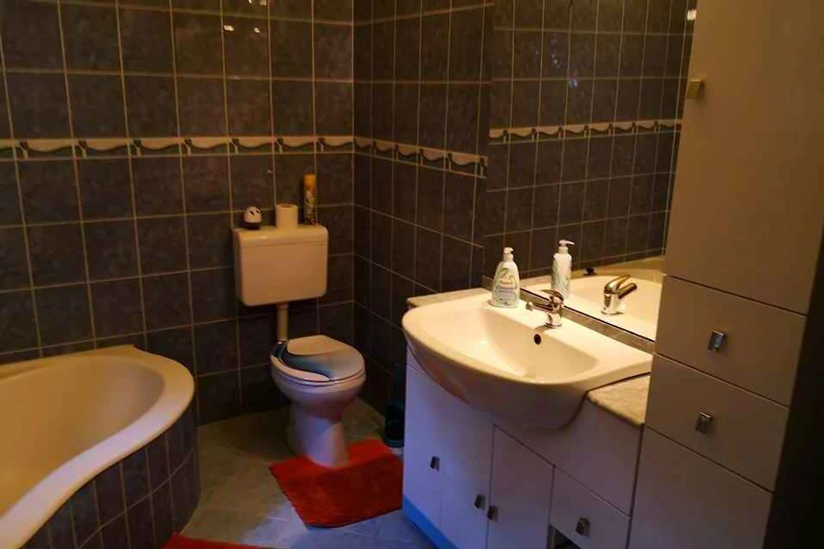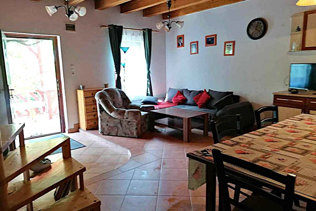 Balatonlelle. Das Ferienhaus befindet sich auf einem 500 qm grossen, geschlossenen Gartengrundstück mit Wiese und Bäumen, von einem Zaun begrenzt. Der Vermieter wohnt nicht im Haus oder auf dem Grundstück. Baby Badewanne steht zur Verfügung, bitte bestellen Sie bei der Buchung. Die Zufahrt erfolgt direkt von der Hauptstrasse (asphaltiert). Parkplatz (für 3 Pkws) auf dem Grundstück.