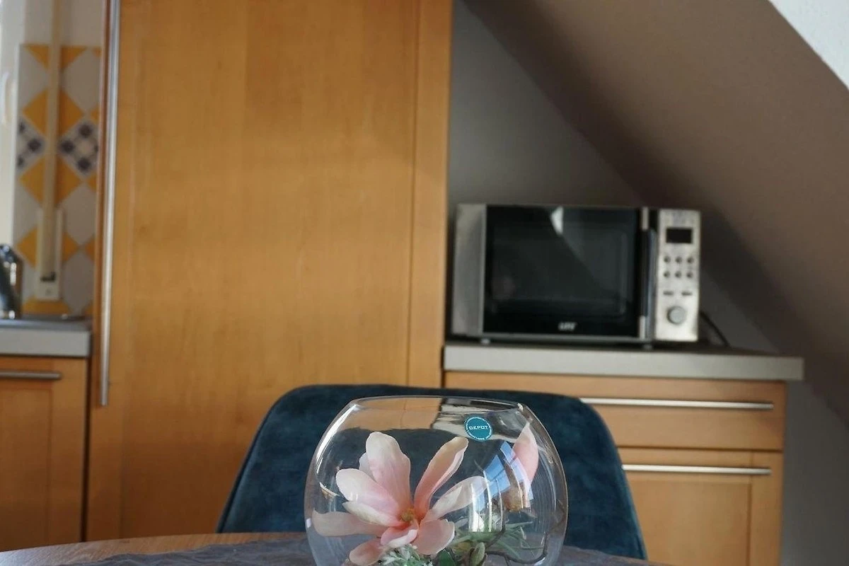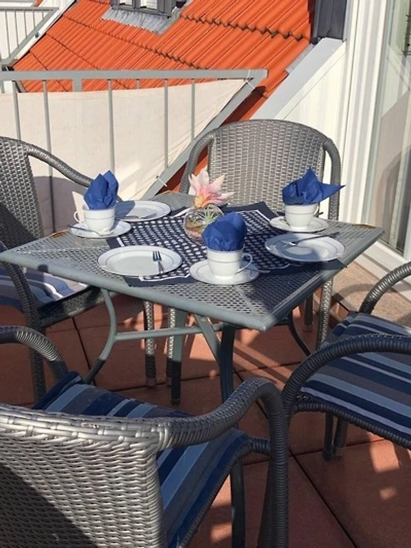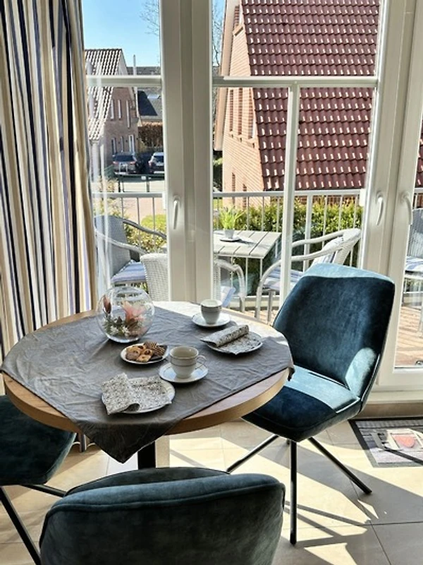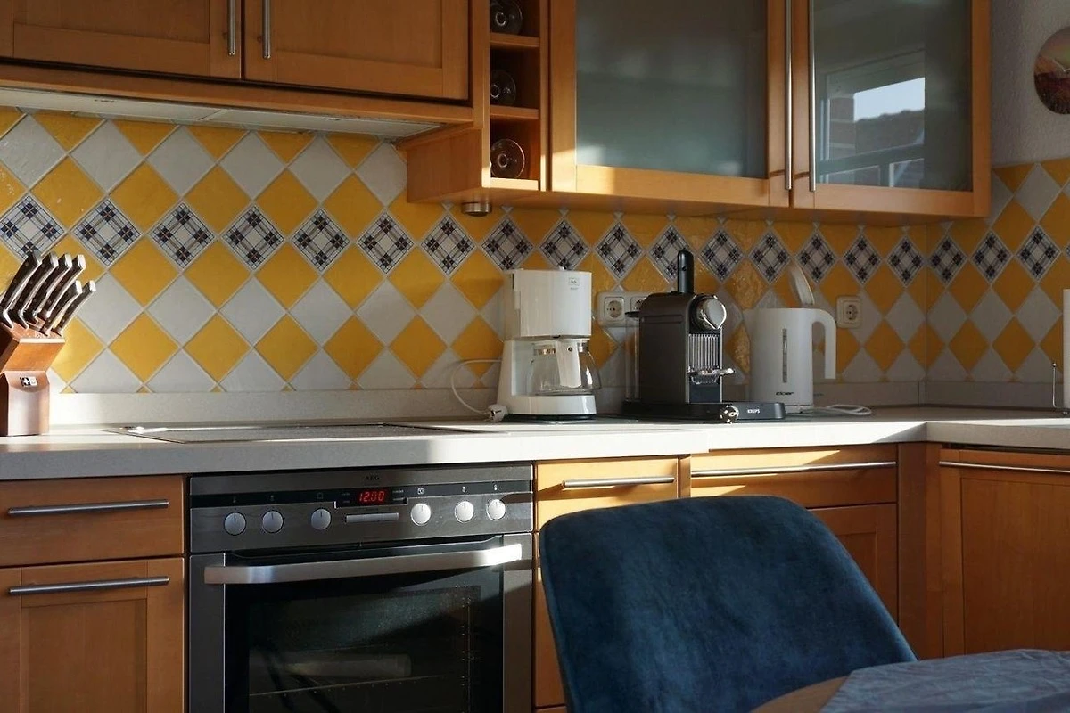 In der gut ausgestattete Küche, lassen sich Mahlzeiten zubereiten, die dann am Esstisch zu sich genommen werden können, oder auf dem möblierten Balkon in Süd-Westrichtung.