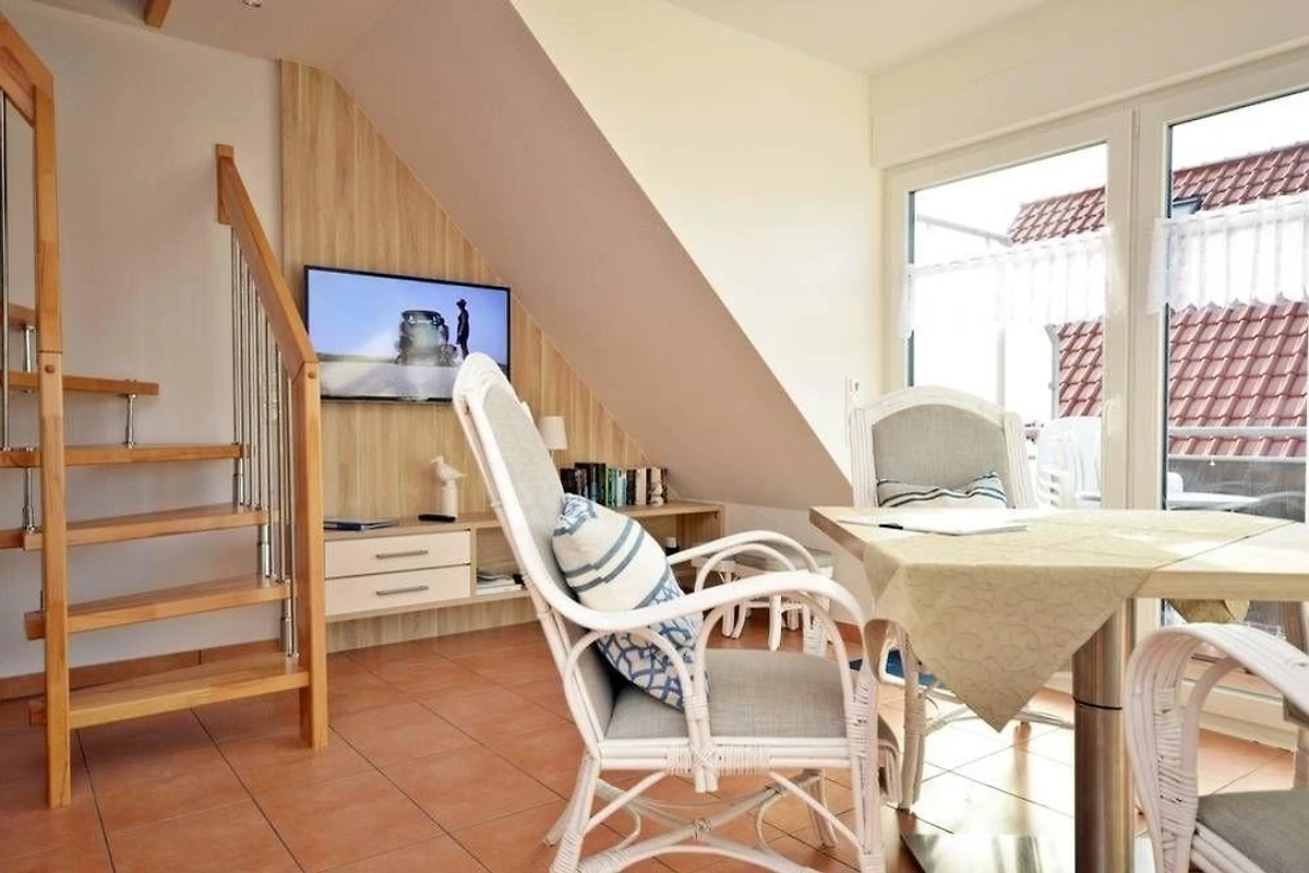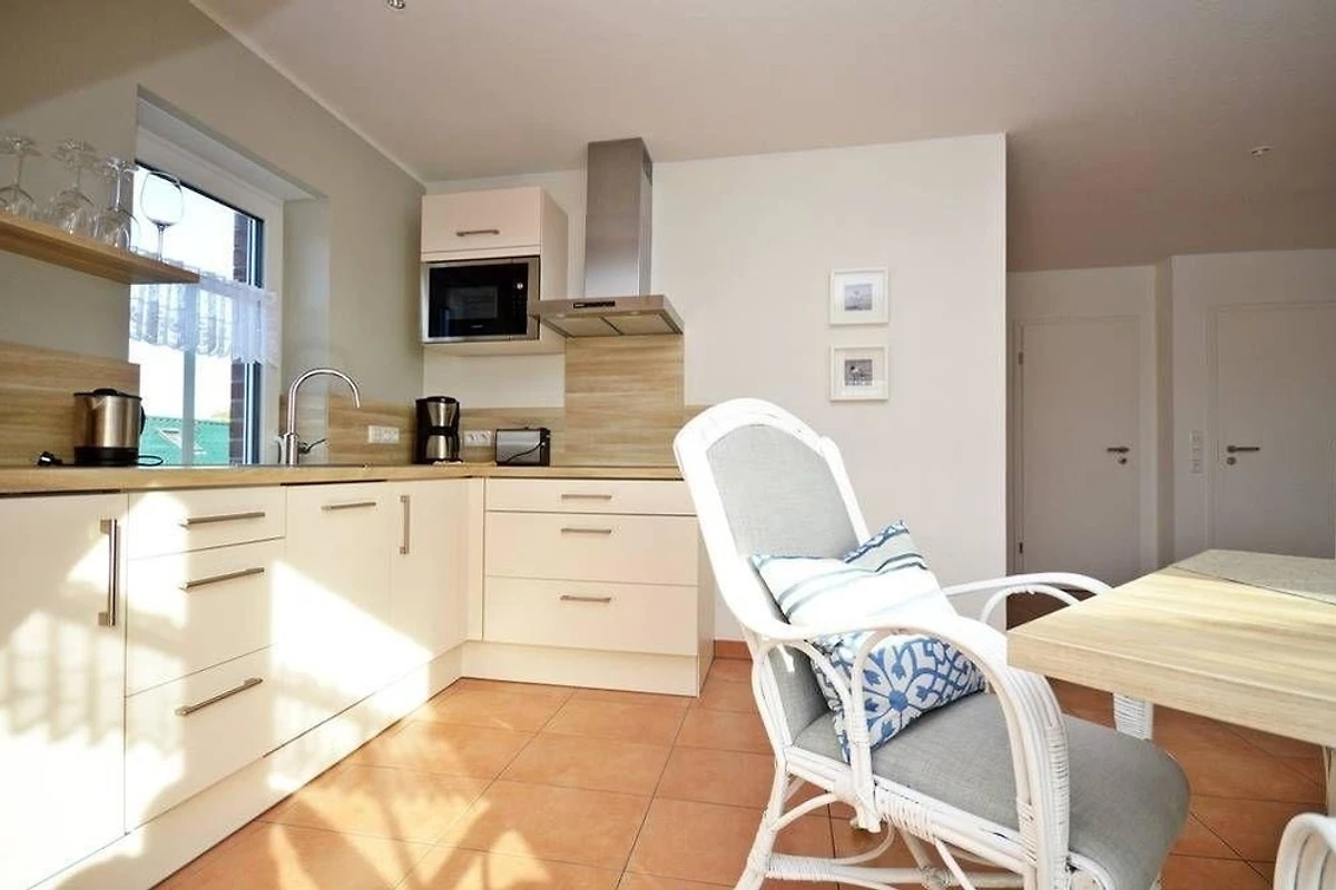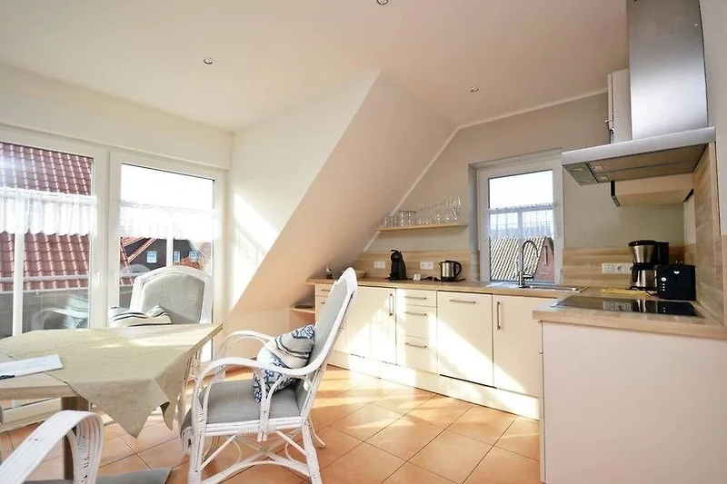 Erholung finden Sie in der hell gestalteten Wohnung. Der Wohnbereich mit 4 bequemen Esszimmer-Sessel und grossem Esstisch lädt seine Gäste zu Entspannung ein. Zur Unterhaltung trägt der vorhandene 40 Zoll Flachbild-TV mit Blue-Ray-Player sowie die Bücher und Spiele bei. Die helle und sehr gut ausgestattete Einbauküche enthält Herd mit Ceranfeld, Abzugshaube, Kühlschrank mit Gefrierfach, Geschirrspüler sowie Kaffeemaschine, Wasserkocher, Toaster, Eierkocher, Mikrowelle sowie ausreichende Koch- und Küchenutensilien.