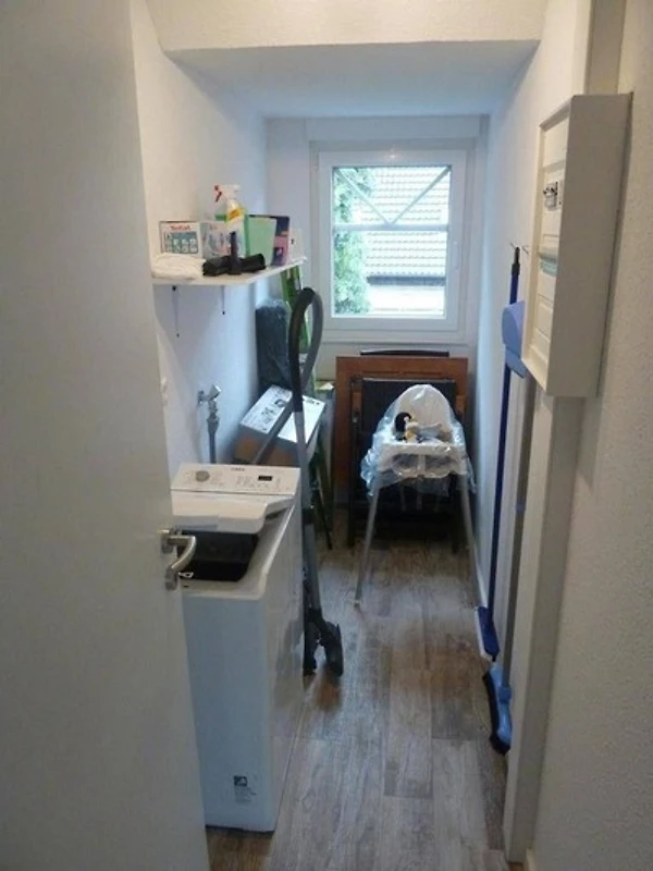 Waschmaschine, Wäscheständer, Bügelbrett und Bügeleisen finden Sie - neben vielen anderen nützlichen Utensilien wie Staubsauger und Kehrgarnitur - im Abstellraum.