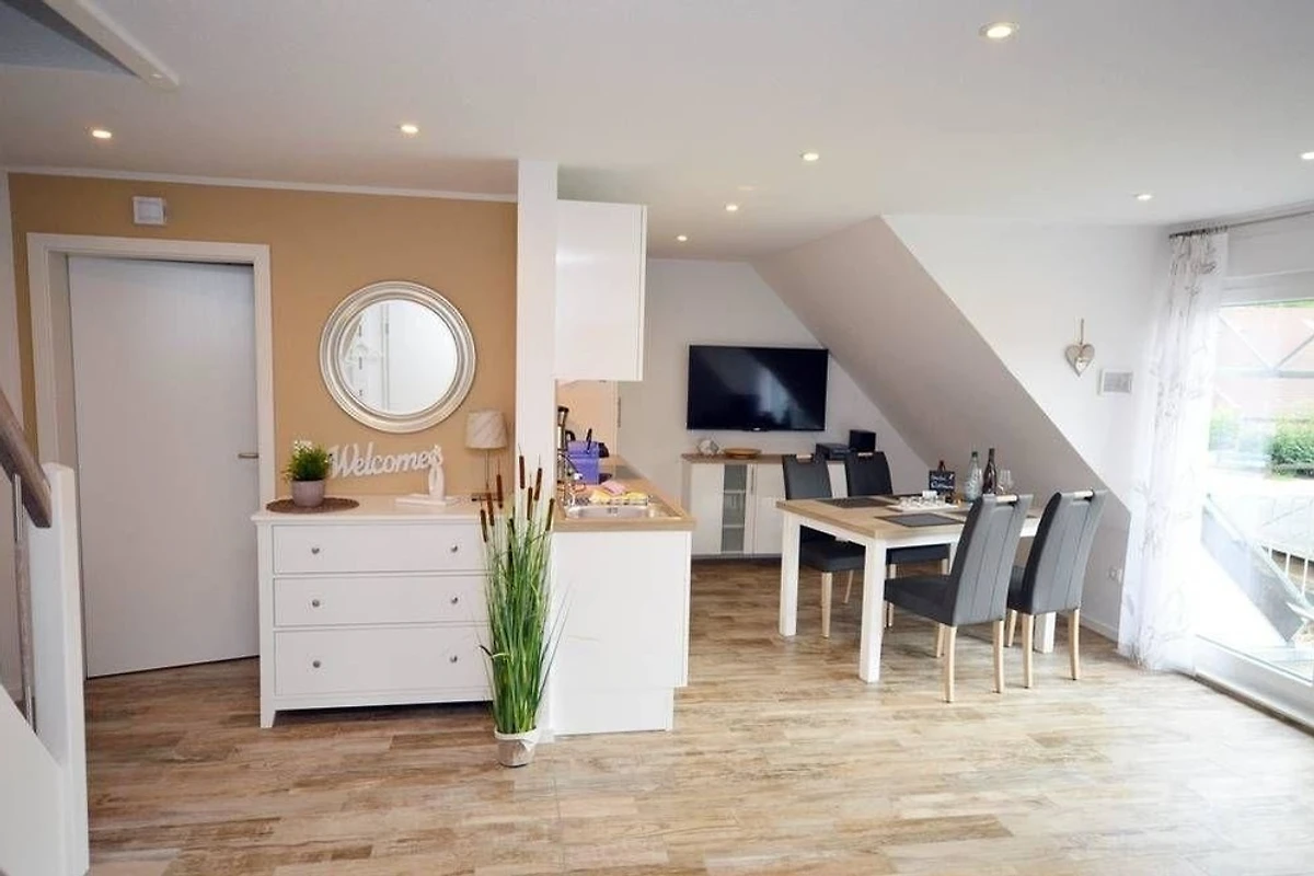 Die Wohnung liegt sehr günstig und ruhig, abseits des touristischen Trubels, in einem ruhigen Wohngebiet im nördlichen Teil von Norden. Sowohl das Stadtzentrum von Norden, mit der malerischen Fussgängerzone und den Häusern im friesischen Stil, als auch das Nordseeheilbad Norddeich und die Fähren zu den Inseln sind gut und in kurzer Zeit zu erreichen.