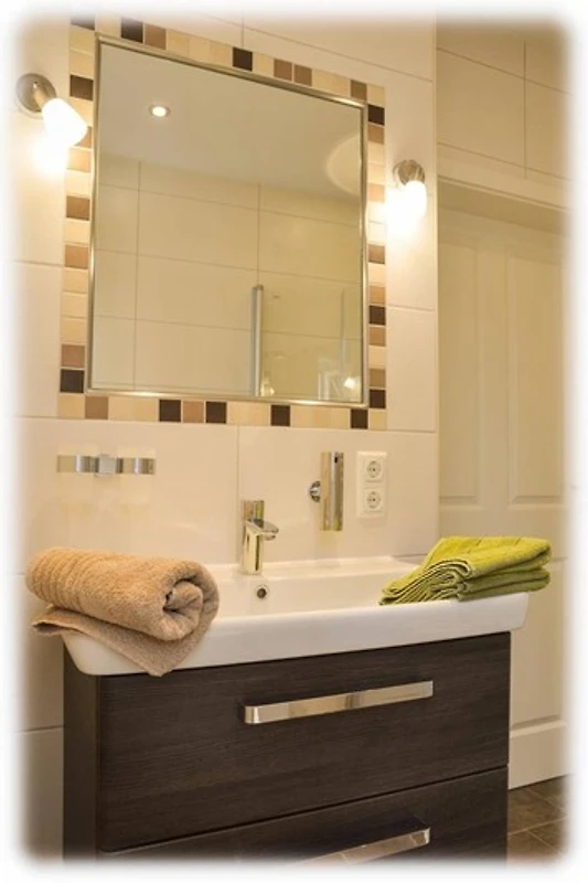 Farbliche Akzente, die Fussbodenheizung, die in jedem Raum individuell eingestellt werden kann sowie hochwertiger Vinyl-Boden im Wohnbereich unterstützen den exklusiven Charakter der Wohnung. Die in der Wohnung befindlichen Lichtstimmungen wurden alle vor Ort (Norddeich / Westermarsch) aufgenommen.