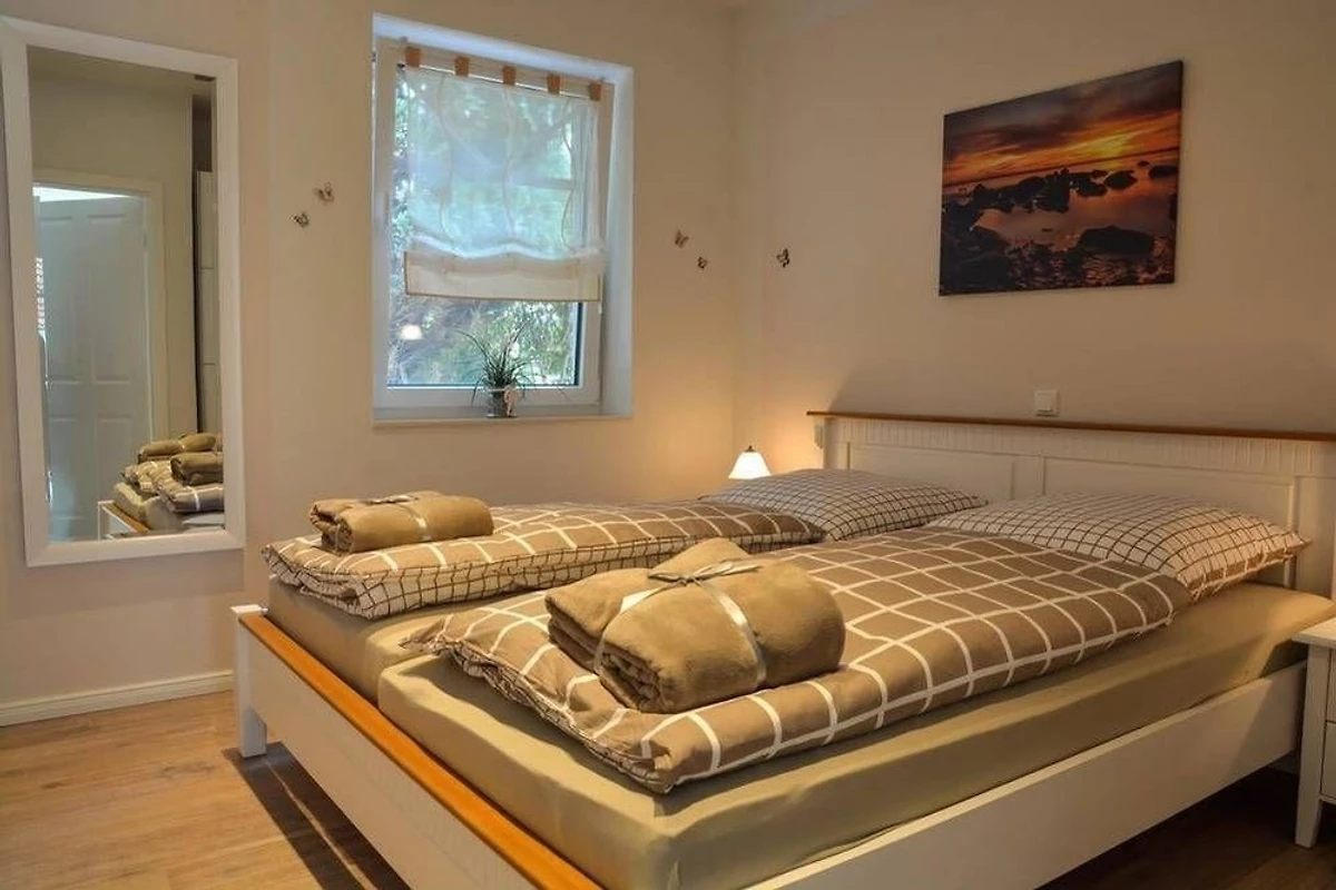Im zweiten Schlafzimmer sind zwei Einzelbetten - für die Kinder, welche Erwachsene als Doppelbett zusammen schieben können, vorhanden. Zudem 2 Beistelltische, ein Kleiderschrank und eine Kommode, Flachbild-TV, Radiowecker.