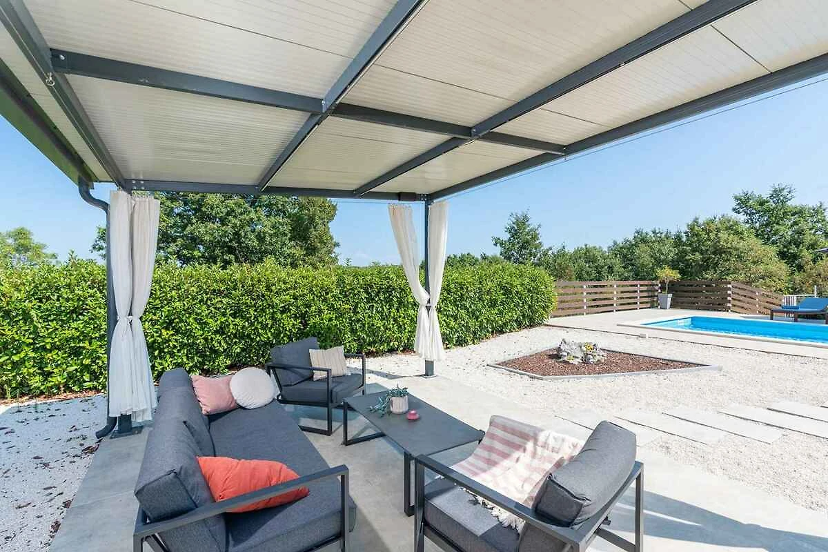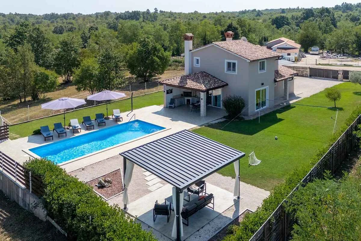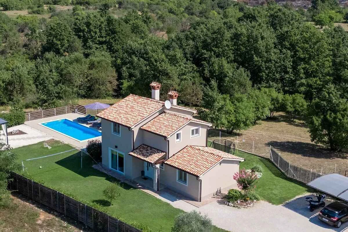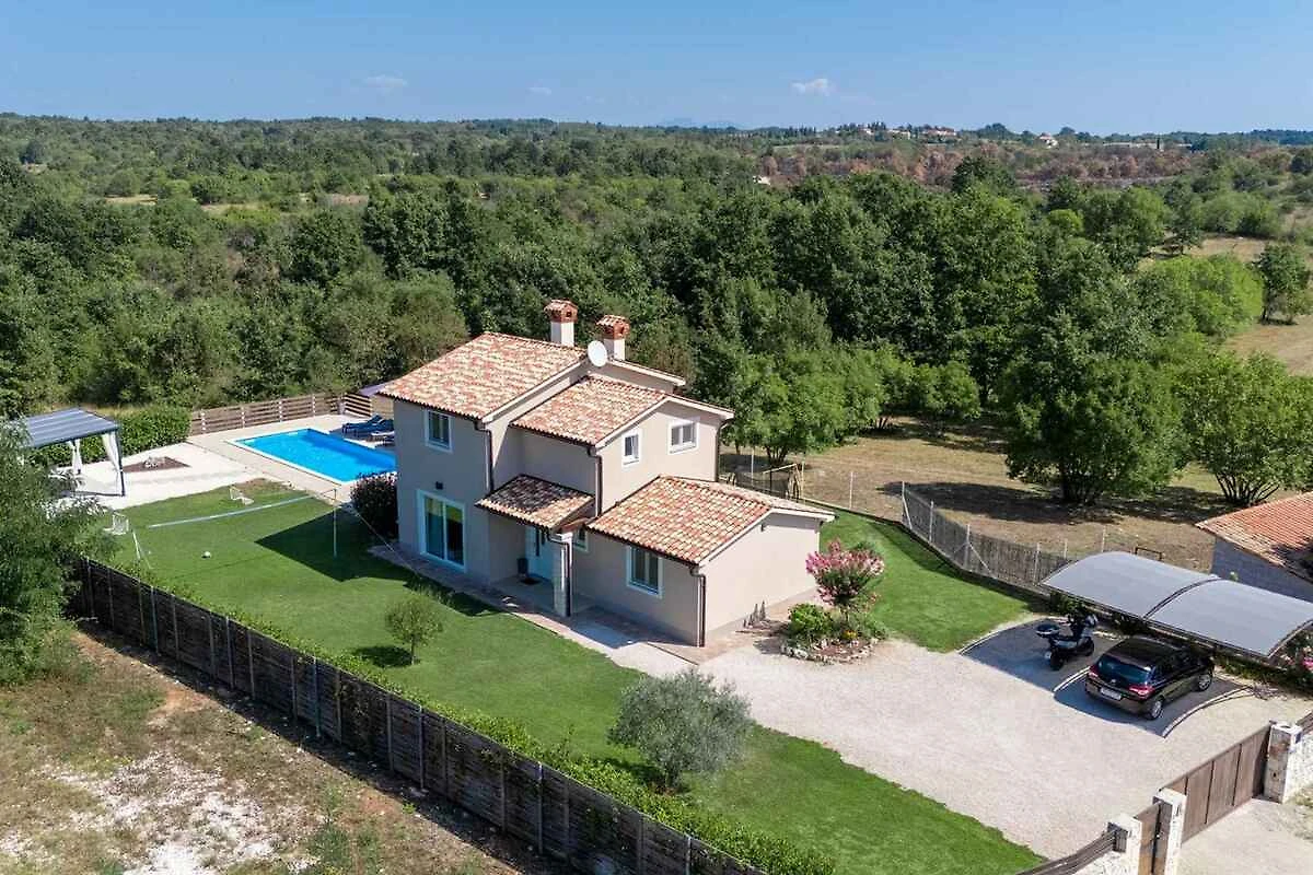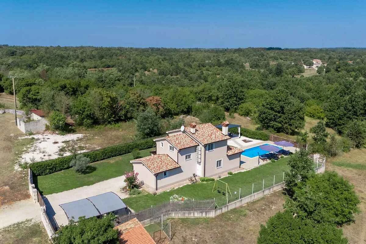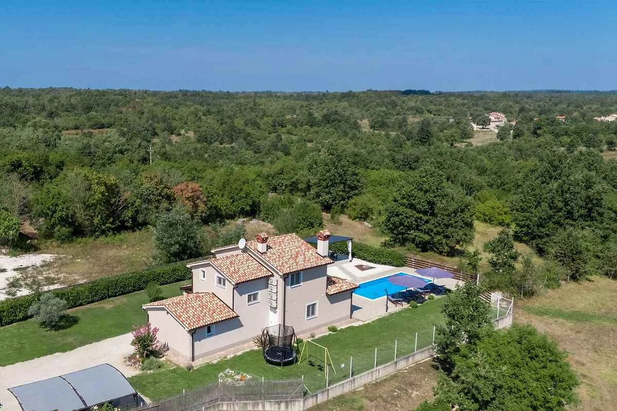 Žminj. Die Villa befindet sich auf einem 900 qm grossen, geschlossenen Gartengrundstück, von einem Zaun begrenzt. Parkplatz (für 3 Pkws) auf dem Grundstück.