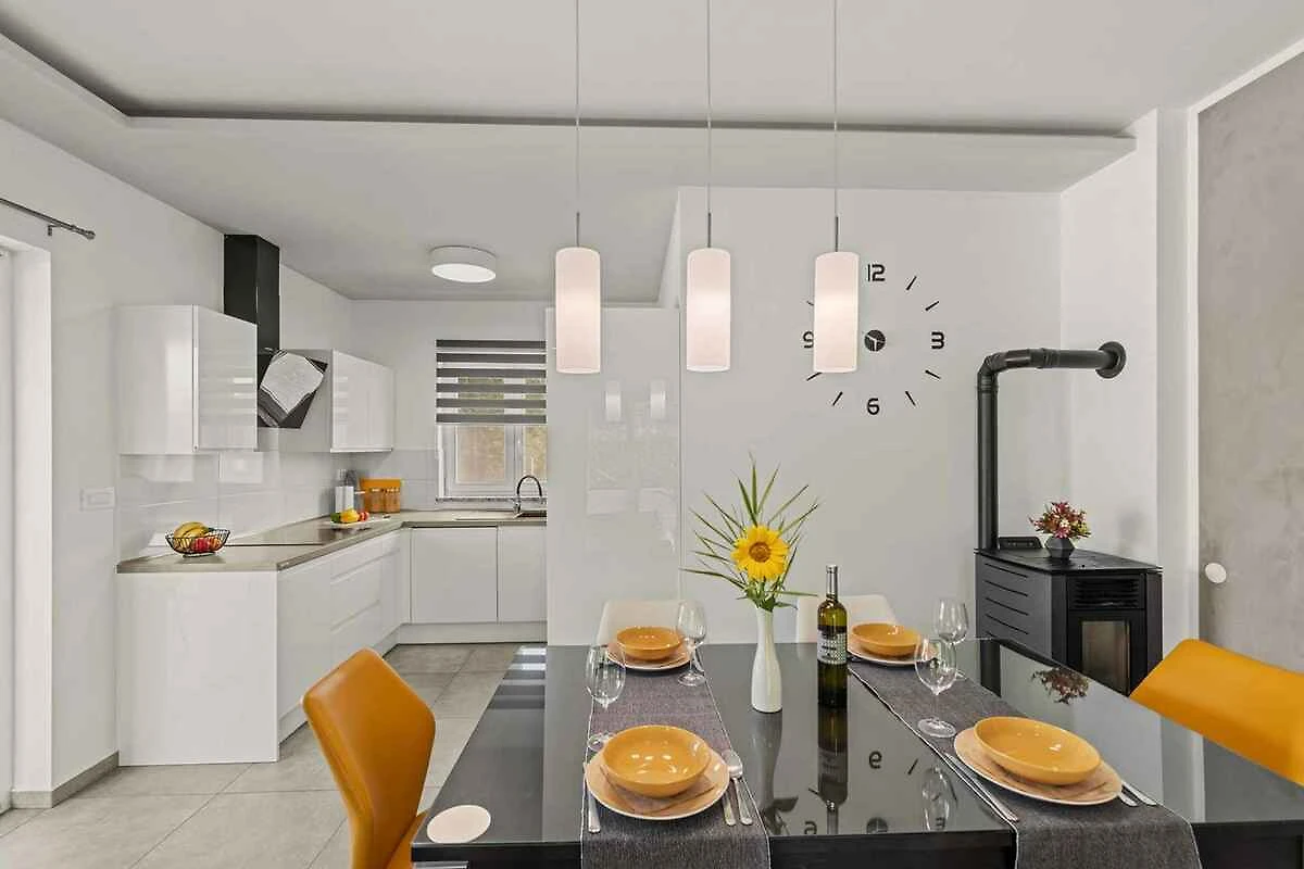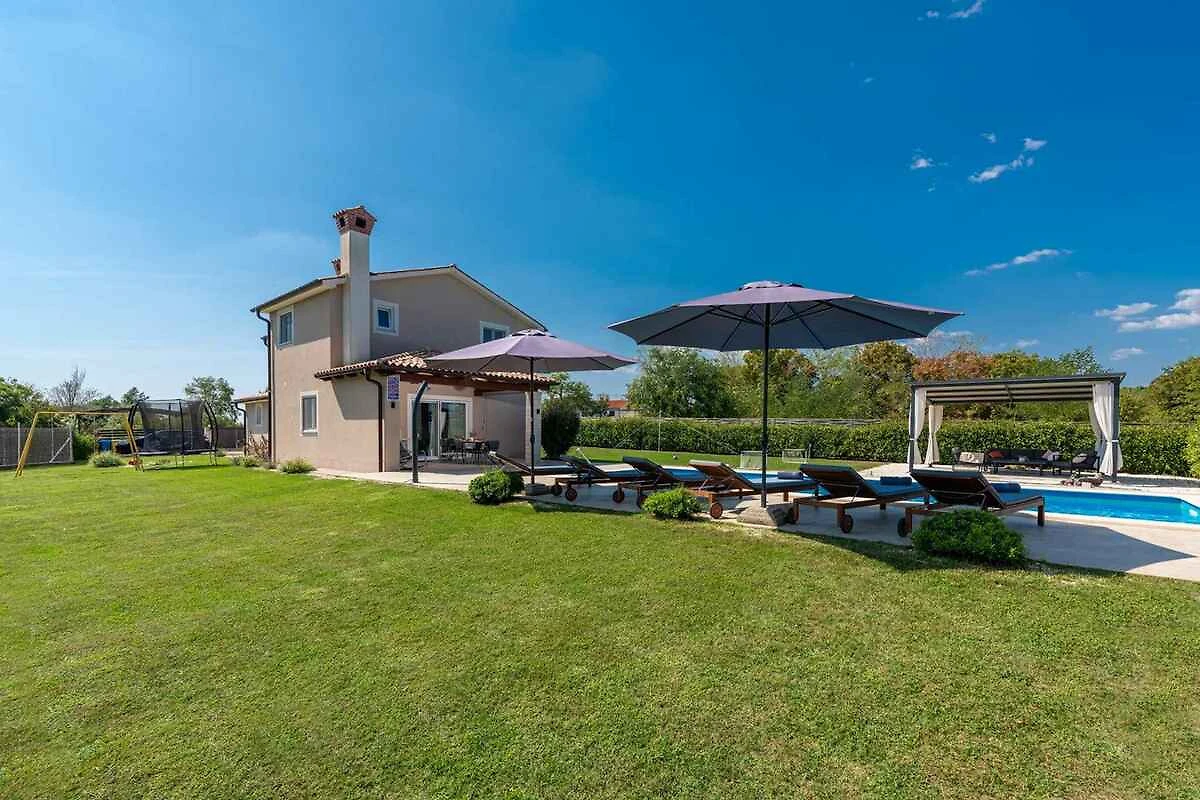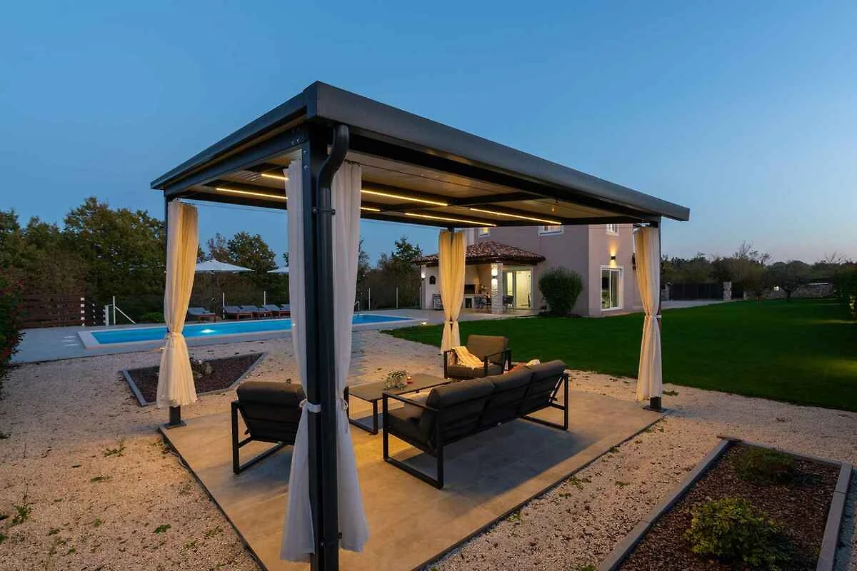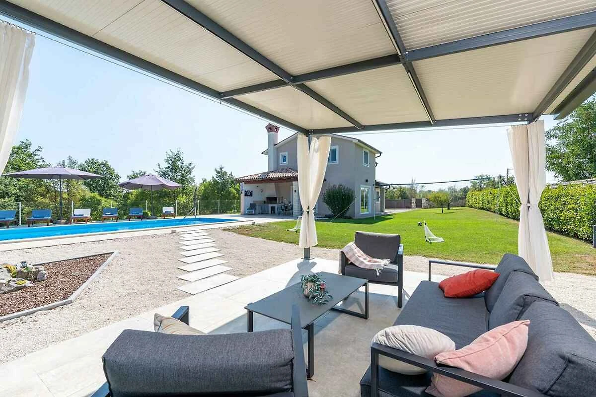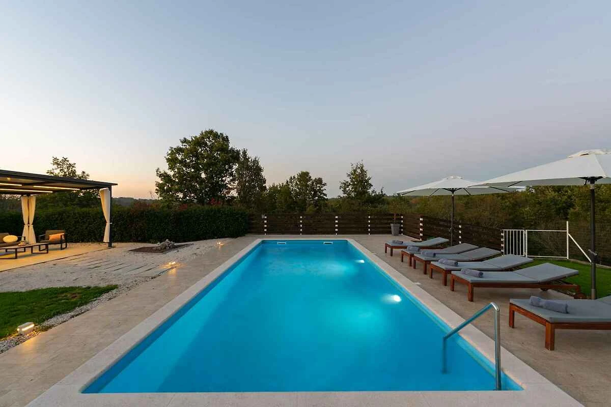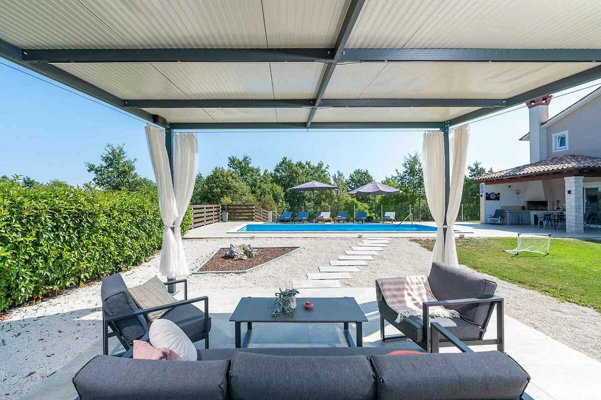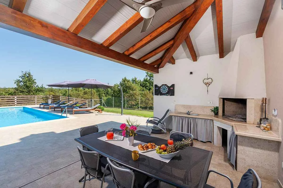 Žminj. Die Villa befindet sich auf einem 900 qm grossen, geschlossenen Gartengrundstück, von einem Zaun begrenzt. Parkplatz (für 3 Pkws) auf dem Grundstück.
